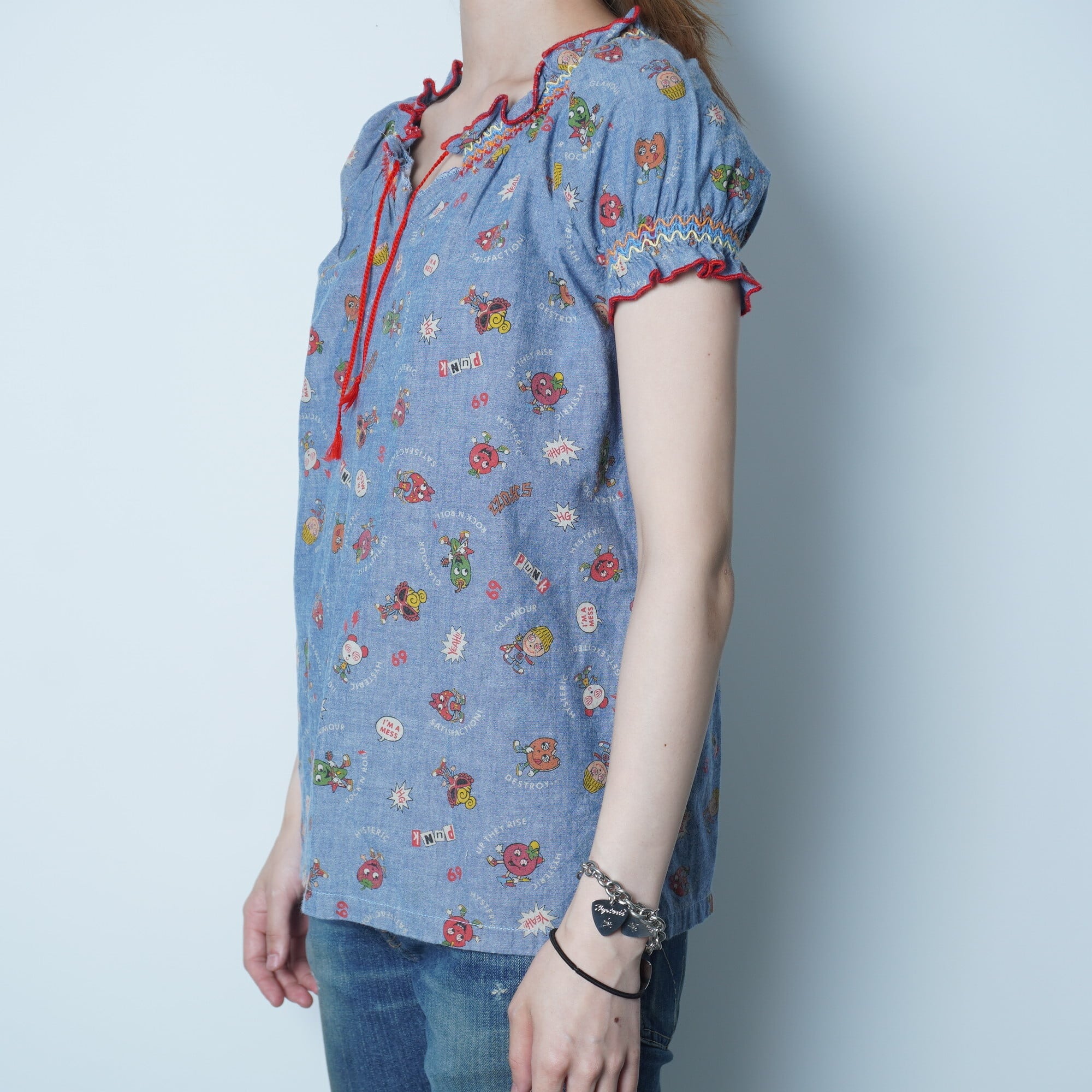 【HYSTERIC GLAMOUR】ロゴ ミニちゃん キャラクタープリントパフスリーブプルオーバー