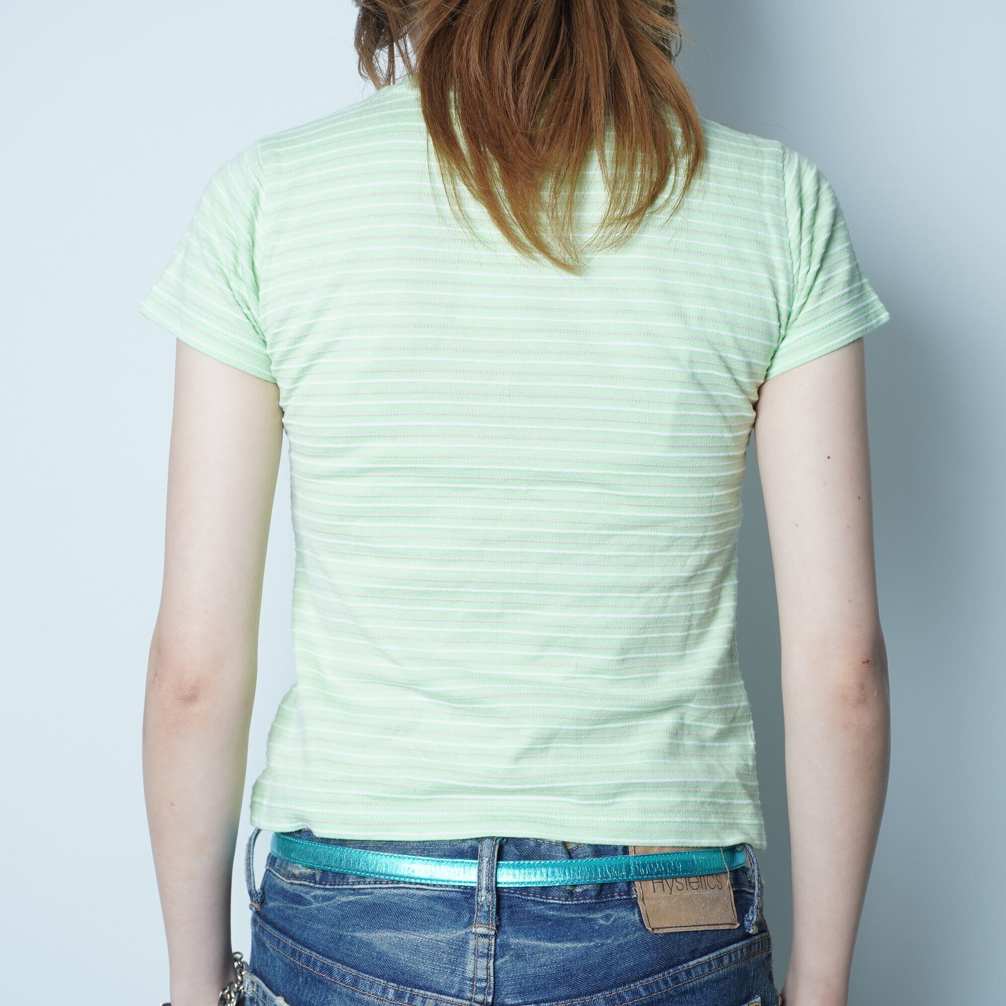【Courrèges】ワンポイントロゴ刺繍ボーダーピチT