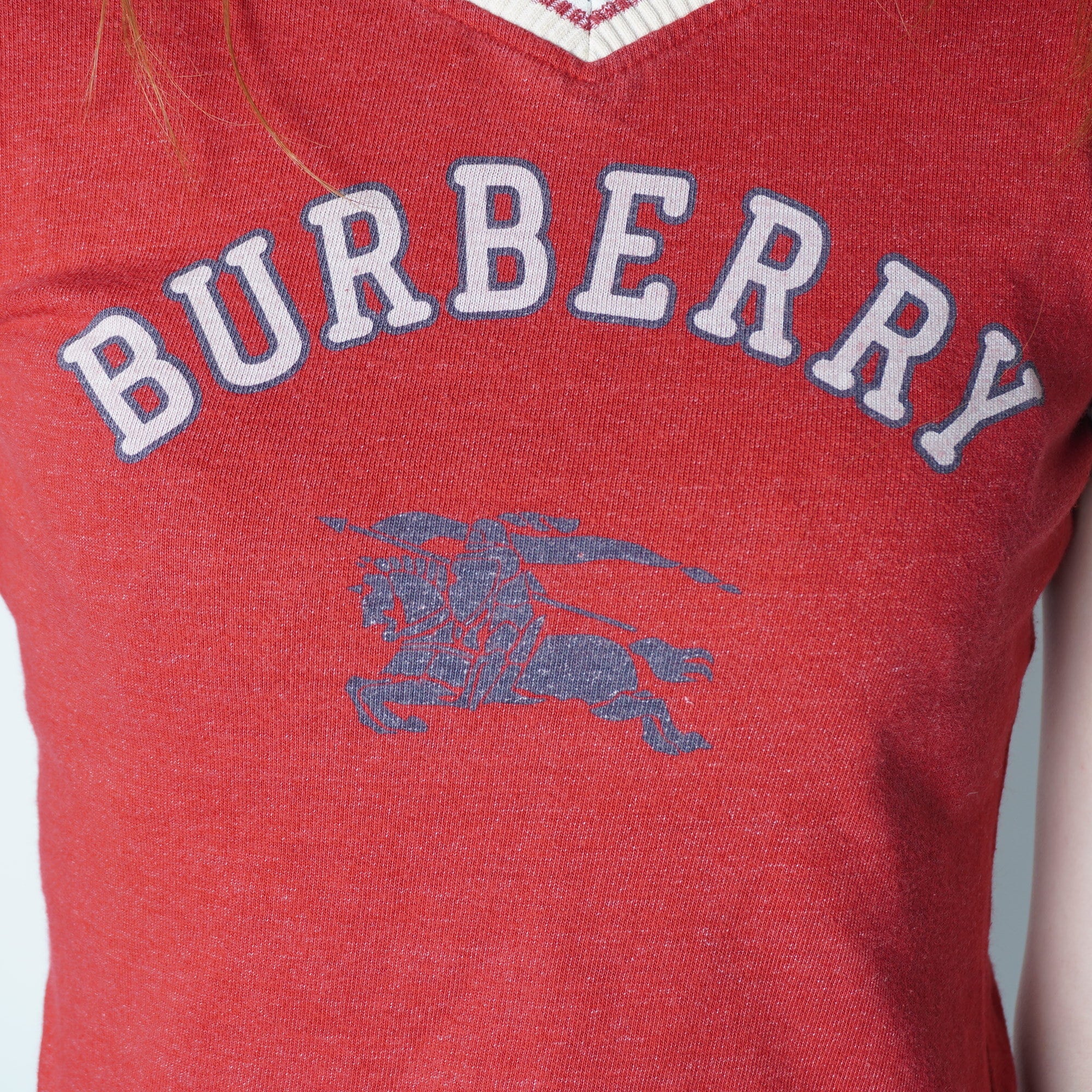 【BURBERRY LONDON】カレッジロゴホースプリントVネックラインピチT 150A