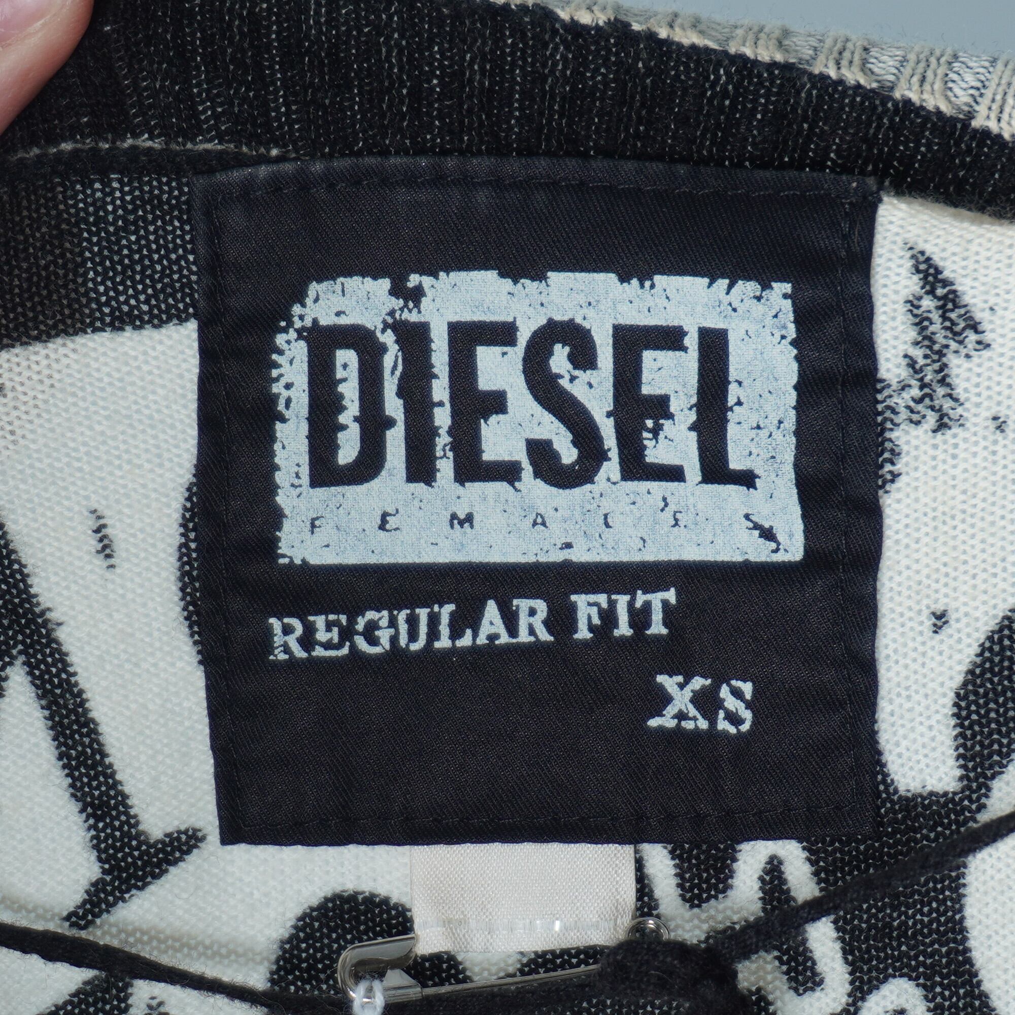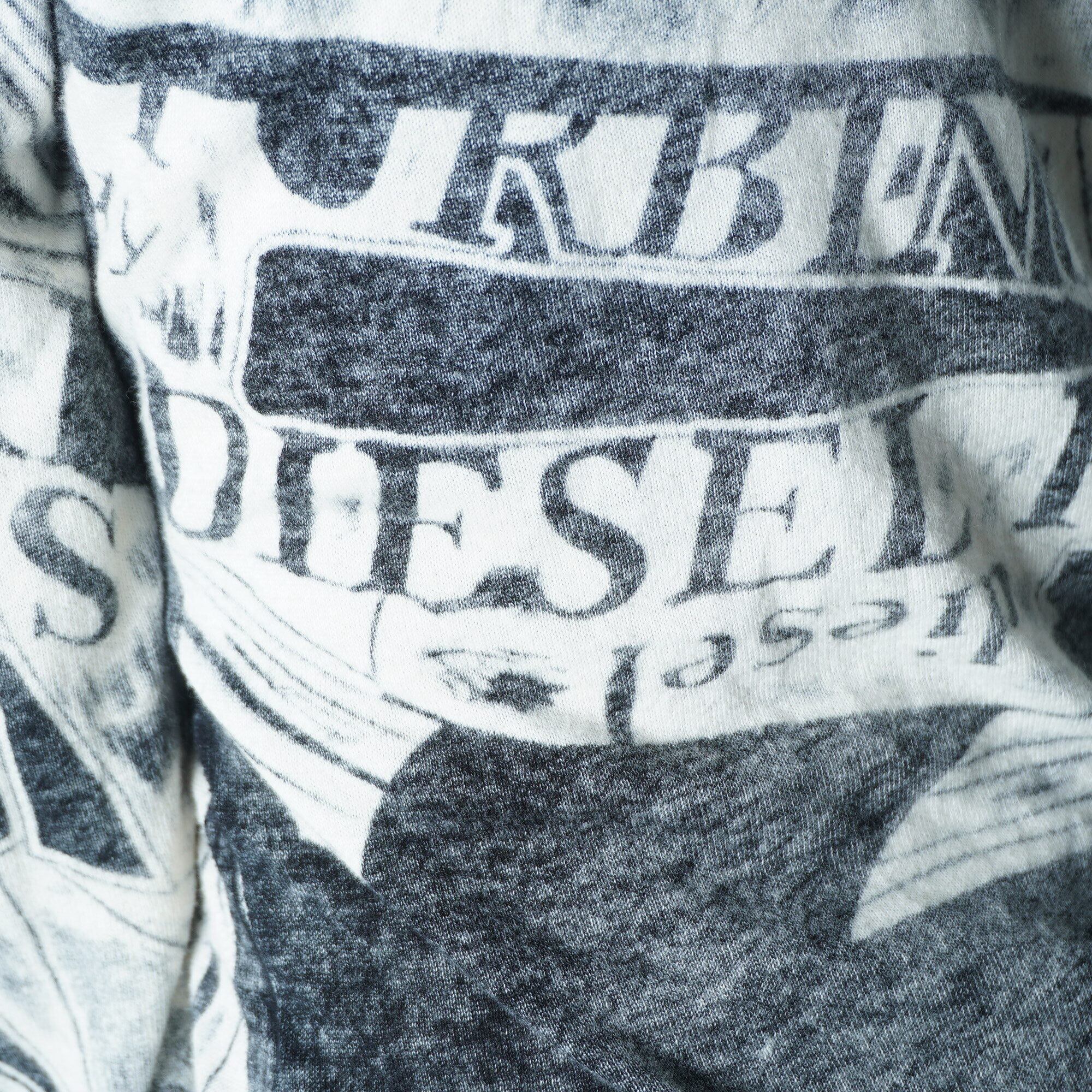【DIESEL】オーバープリントクラック英字パターン薄手カーディガン
