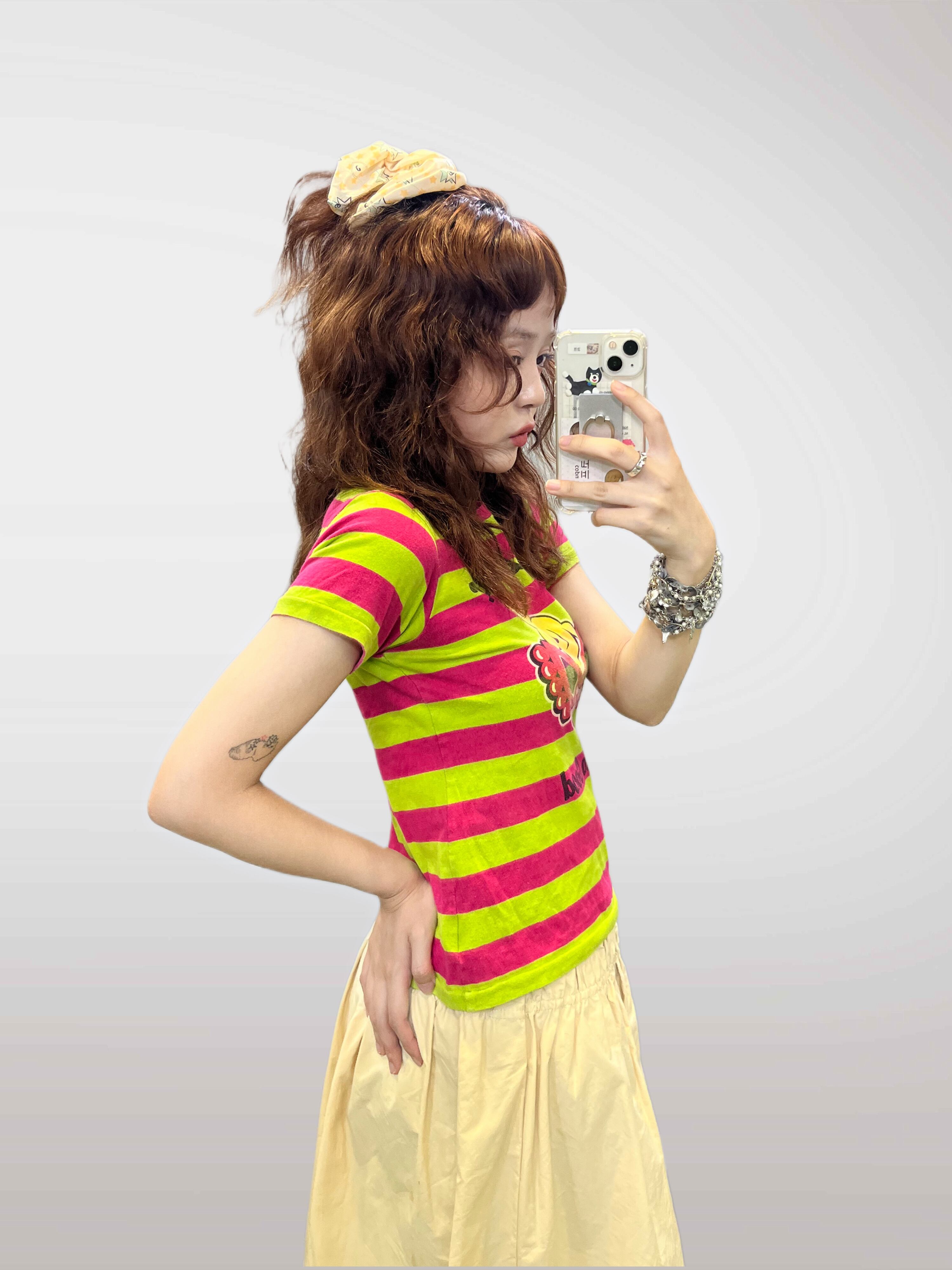 【HYSTERIC GRAMOUR】ヒスミニ MINIちゃんプリント ボーダーロンT
