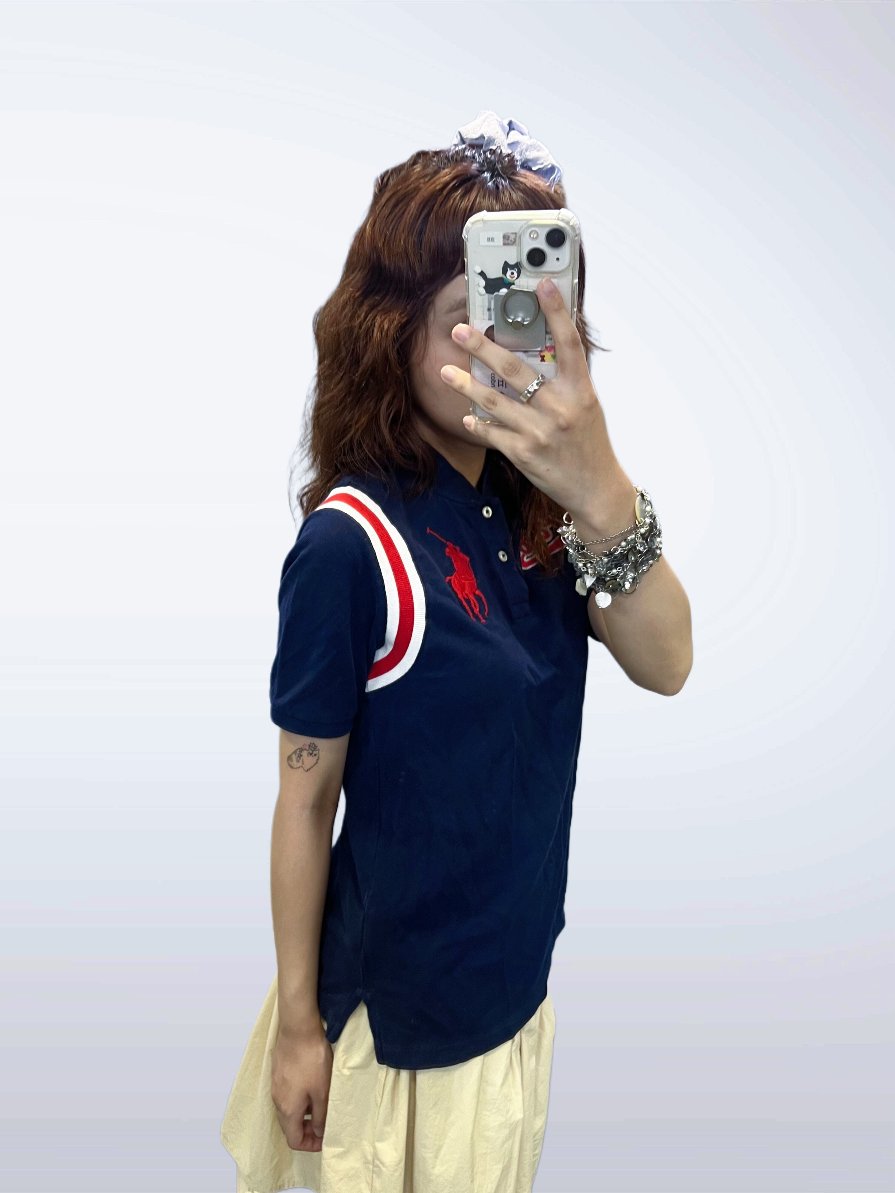【POLO RALPH LAUREN】POLOロゴ&ナンバリングポロシャツ ビッグポニー navy