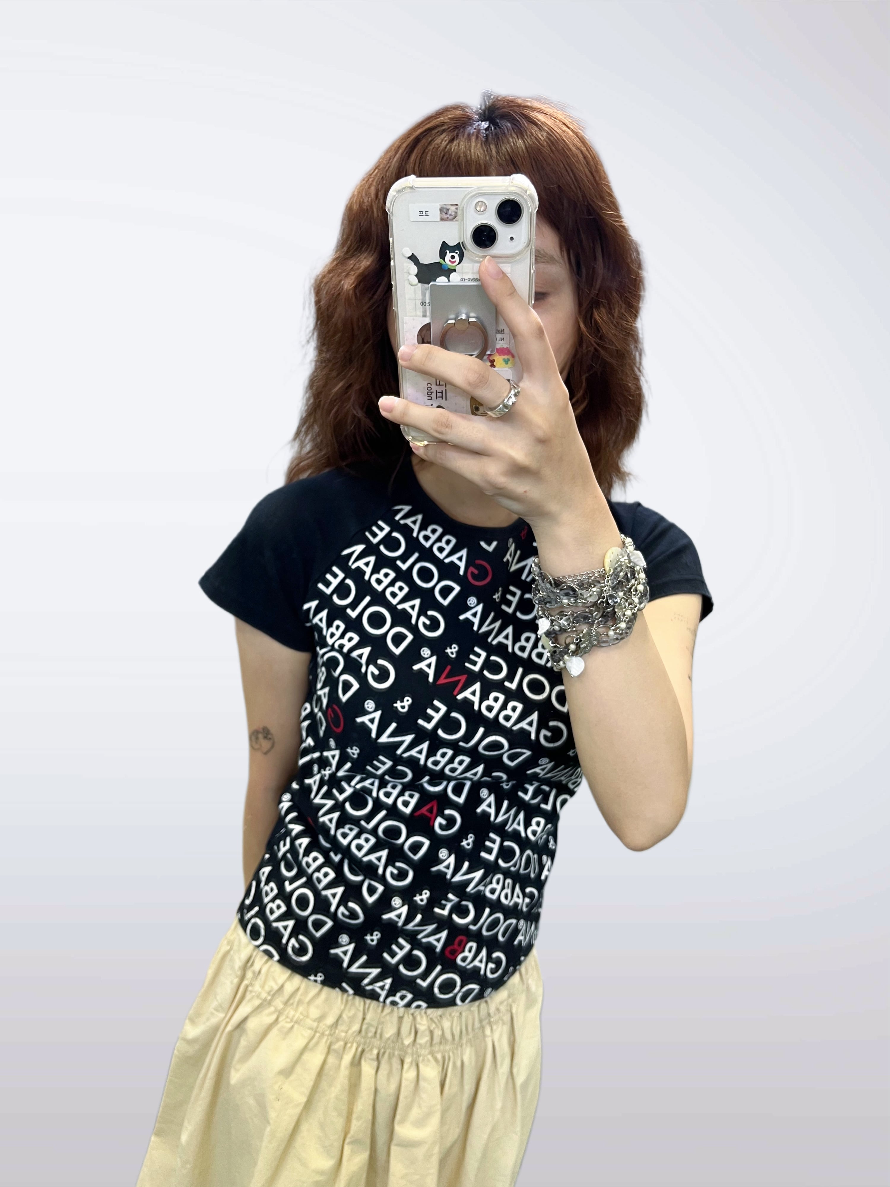 【DOLCE&GABBANA】総ロゴプリントラグランTシャツ