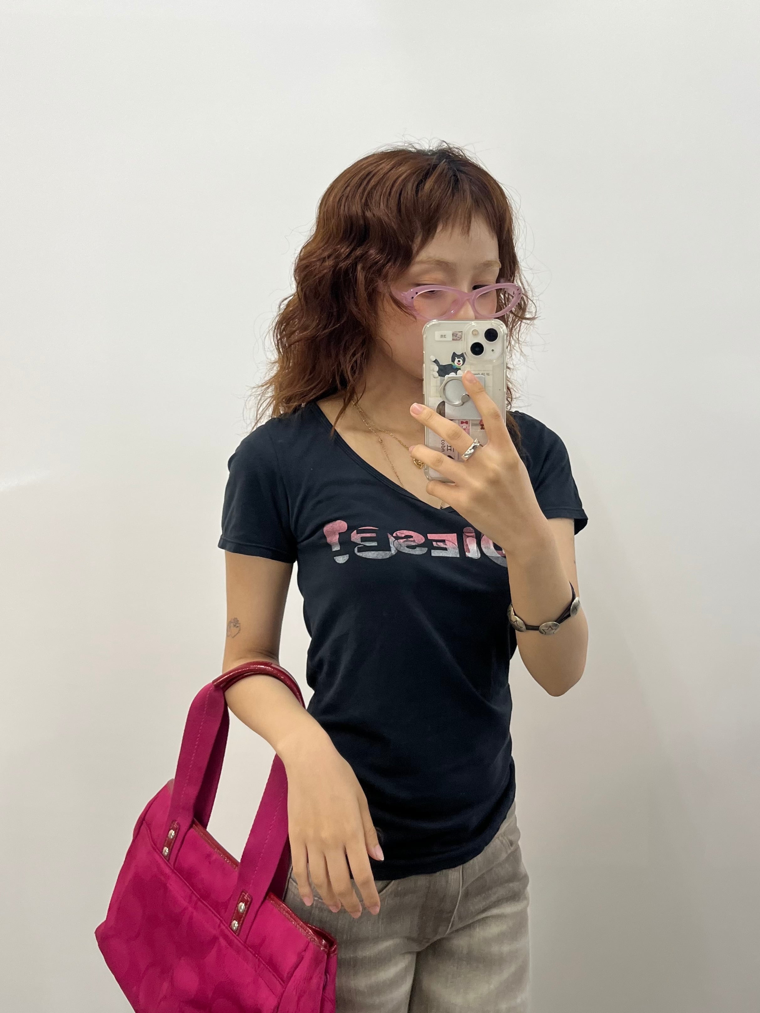 【DIESEL】ディーゼル ロゴプリントUネックピチTEE black