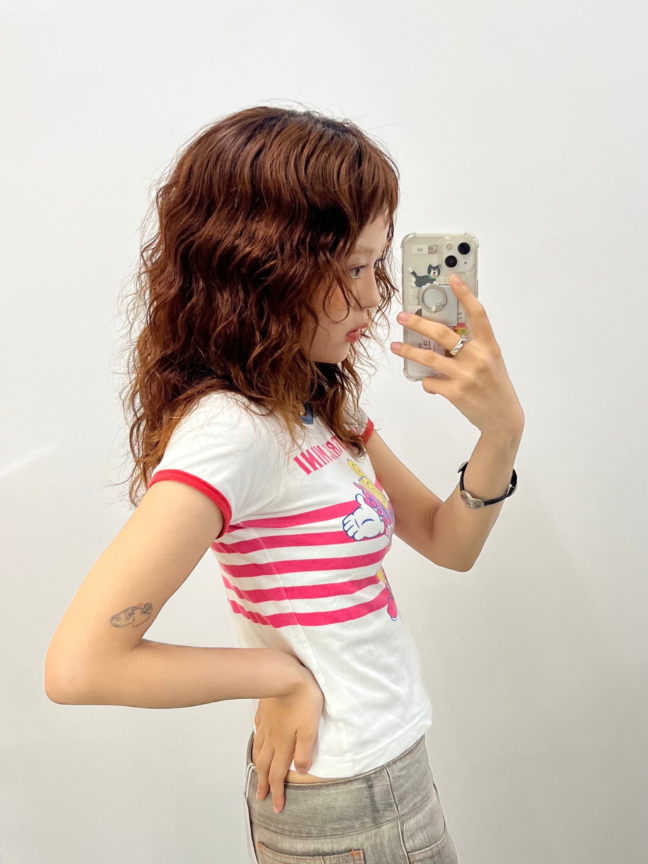 【HYSTERIC GRAMOUR】ヒスミニ “FUNLAND” パロディボーダーピチTEE white