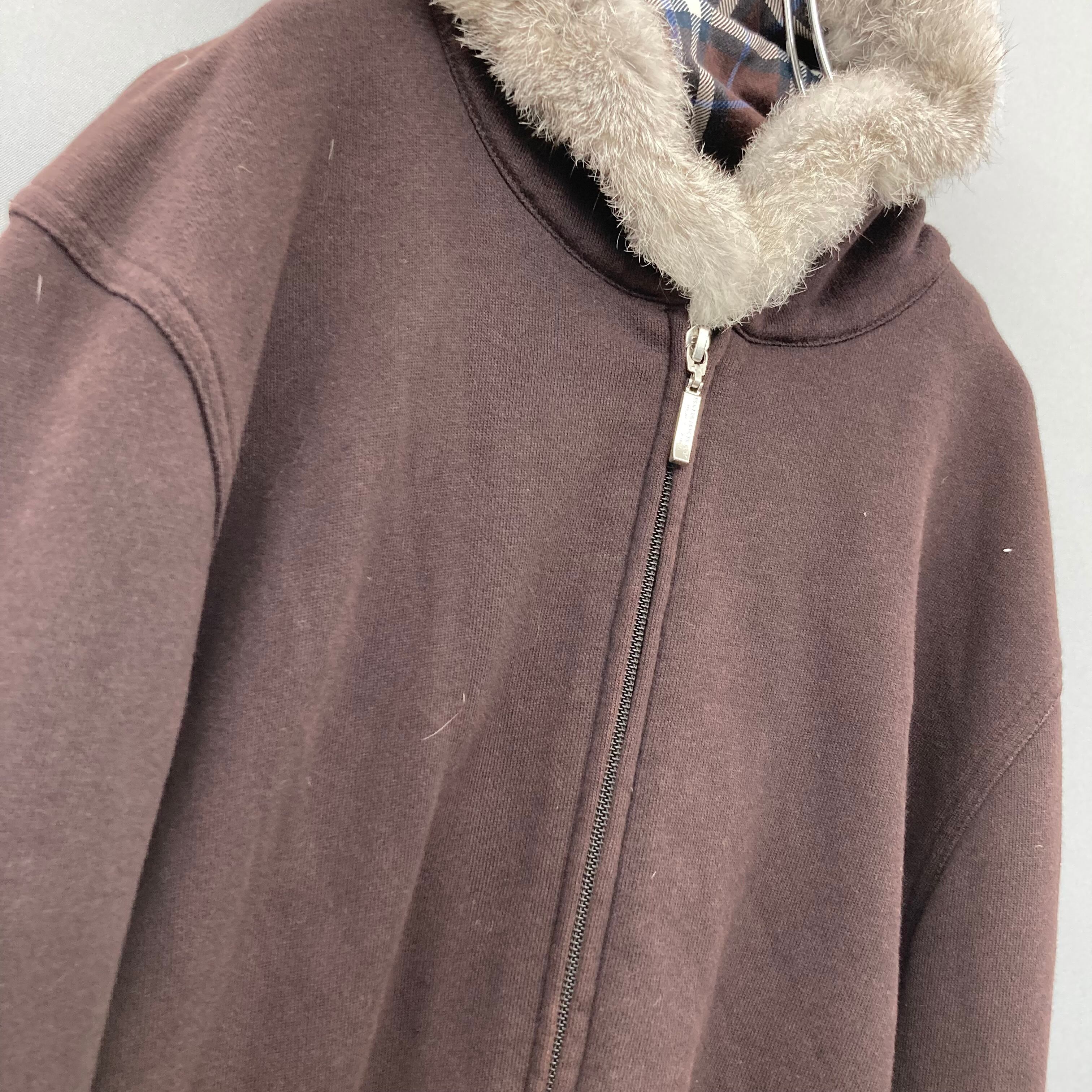 【BURBERRY BLACK LABEL】バーバリー ラビットファーノヴァチェック切替コットンパイルフーディー brown