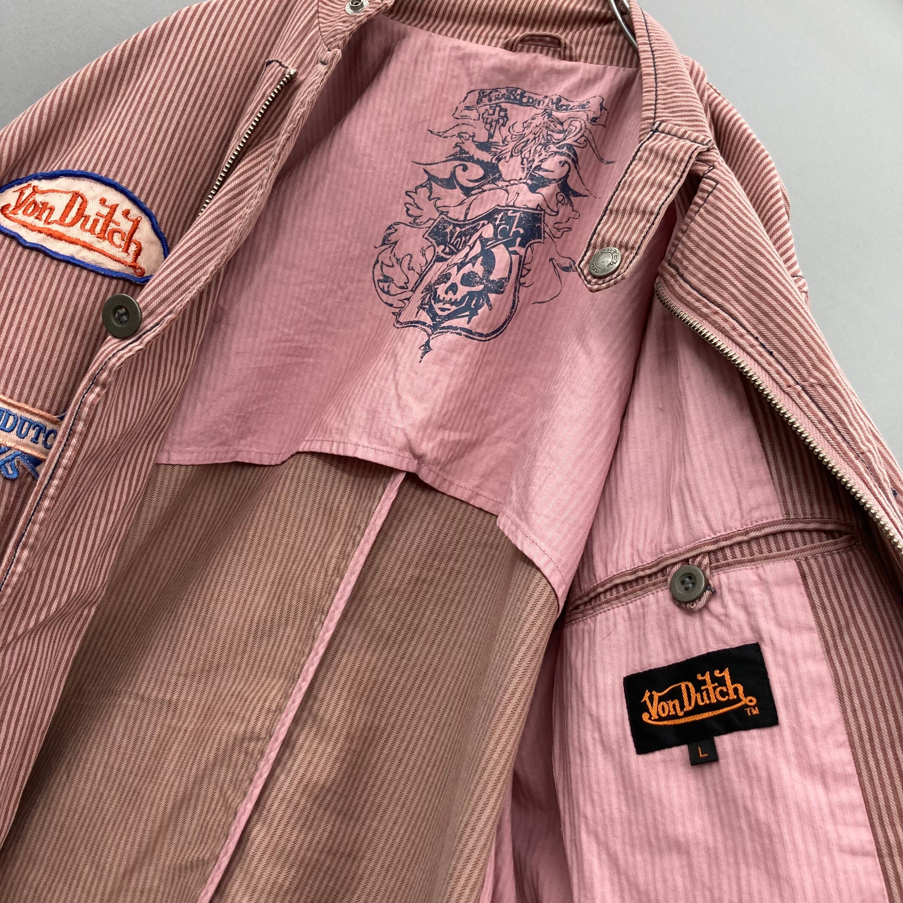 【VonDutch】ボンダッチ ストライプジップアップコットンジャケット pink