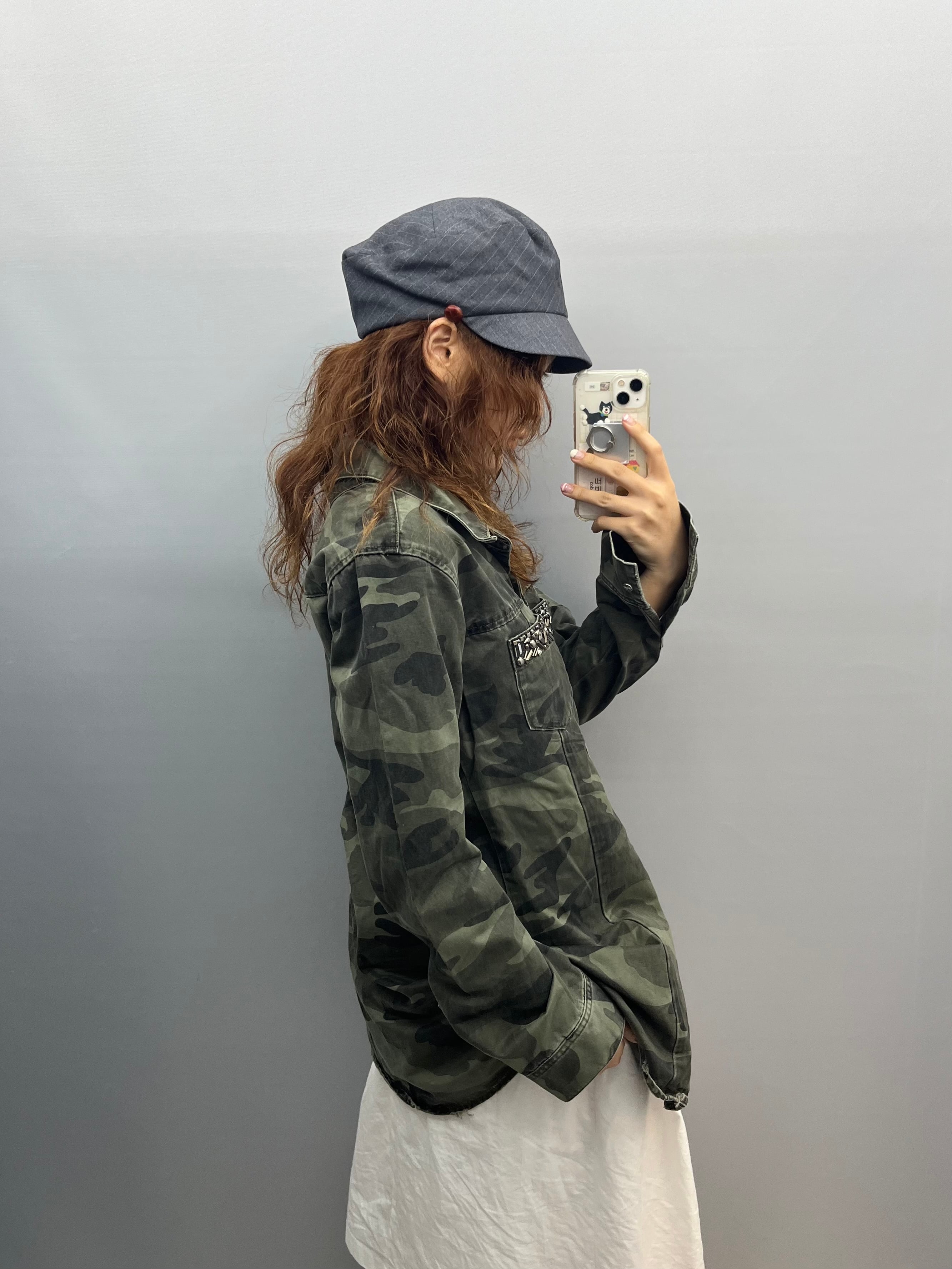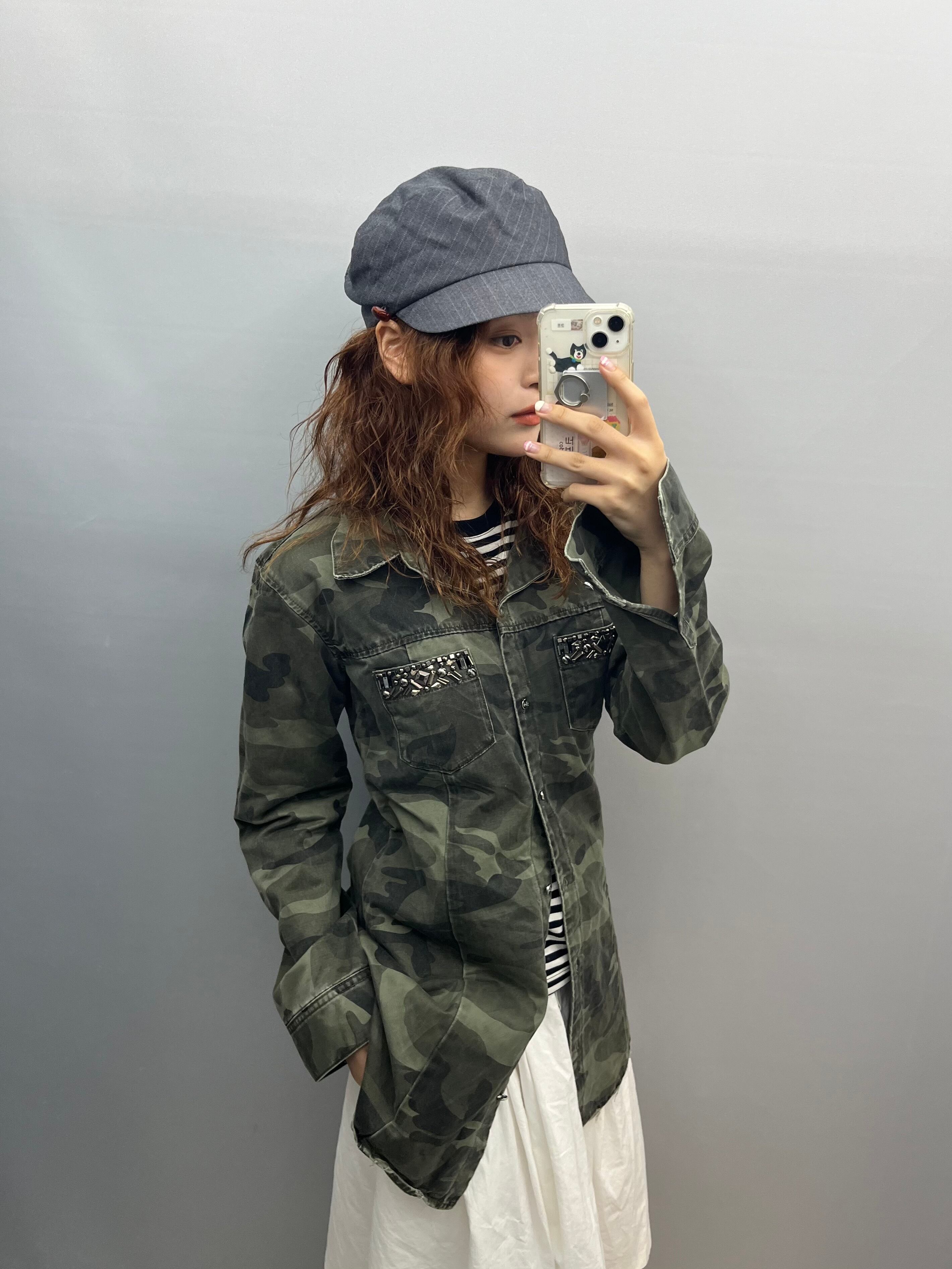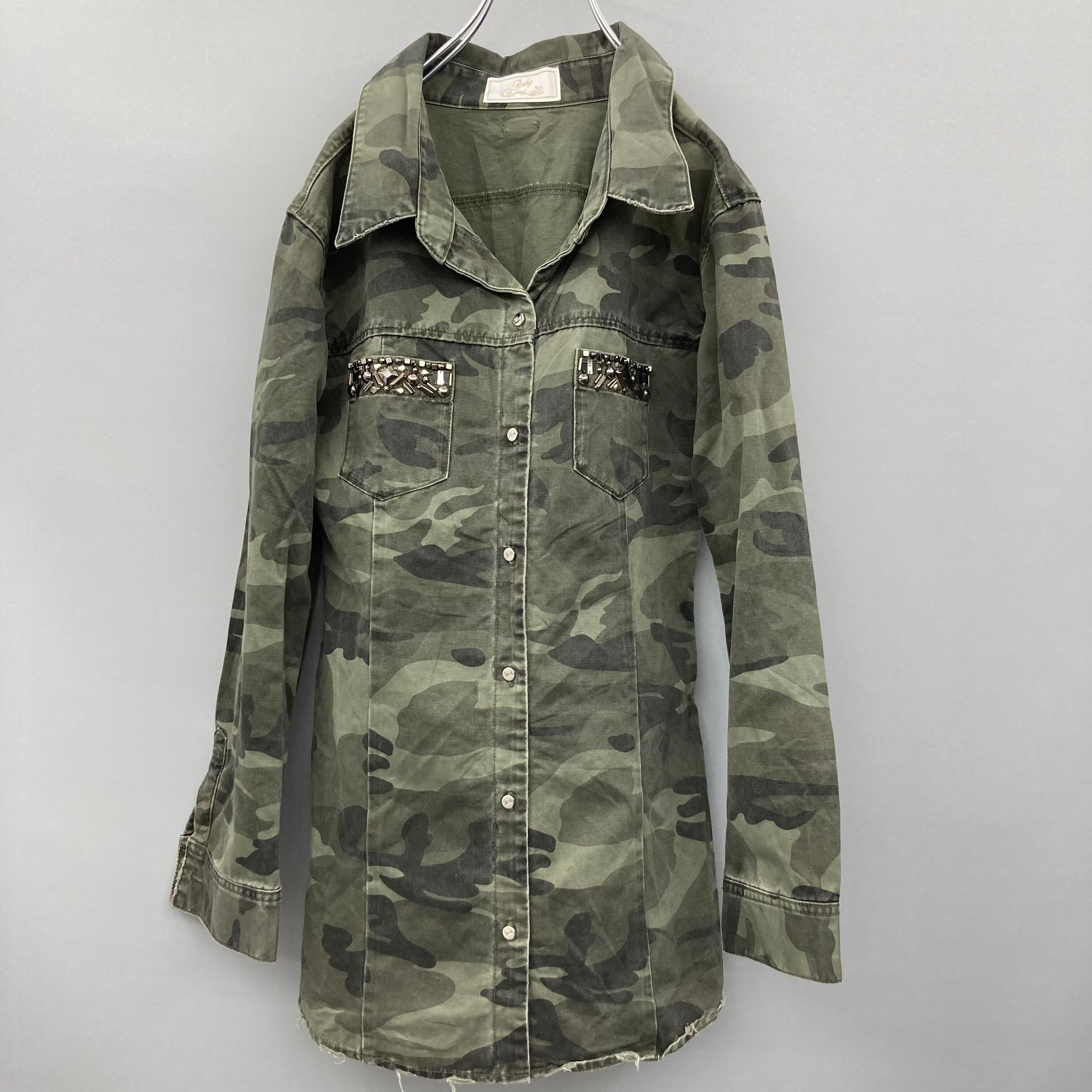 【Rady】レディ ビジューデザインメタルボタンカモワンピシャツ