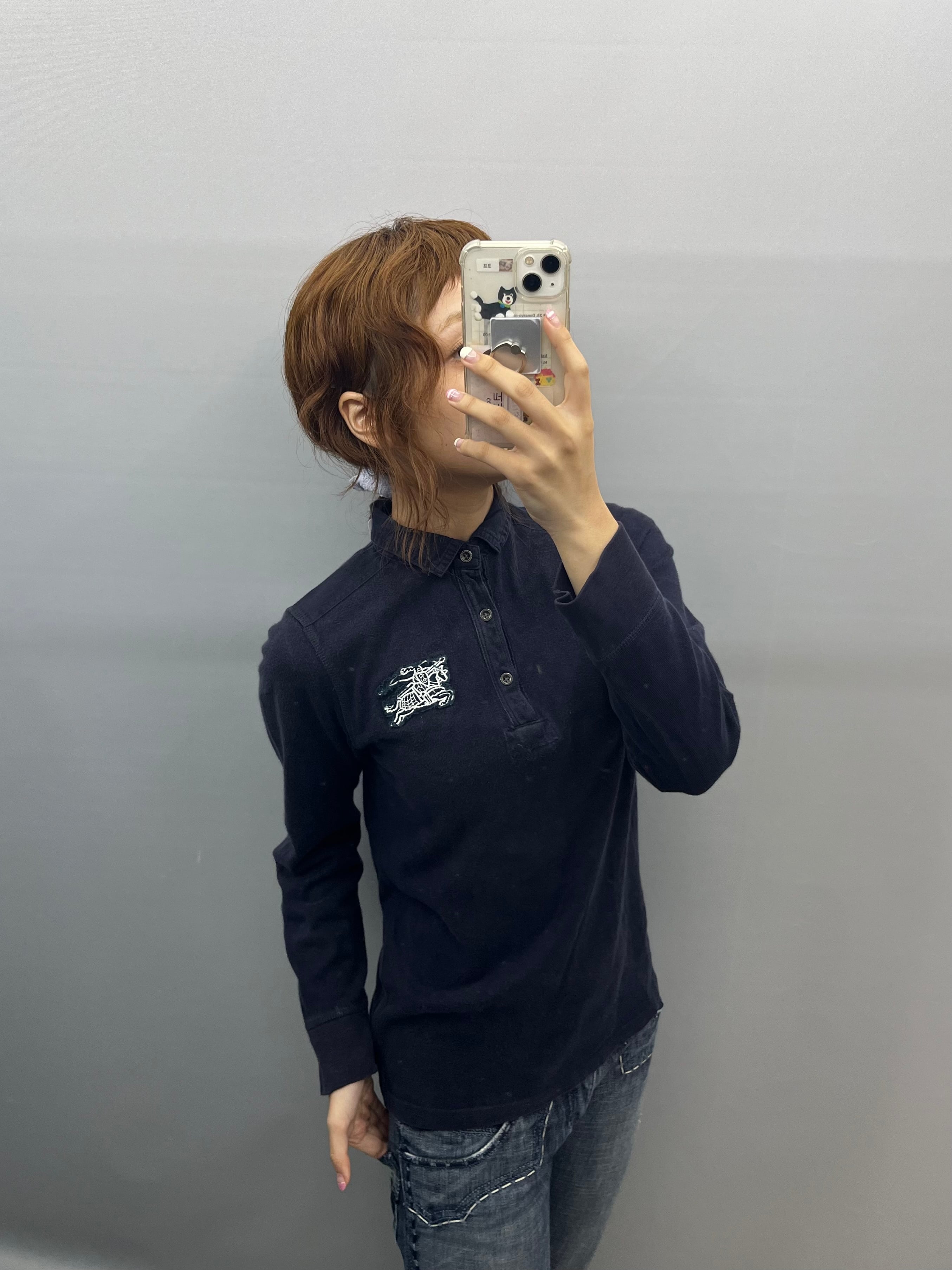 【BURBERRY】バーバリー 胸元ワンポイントホースデザインLSポロTEE dark navy