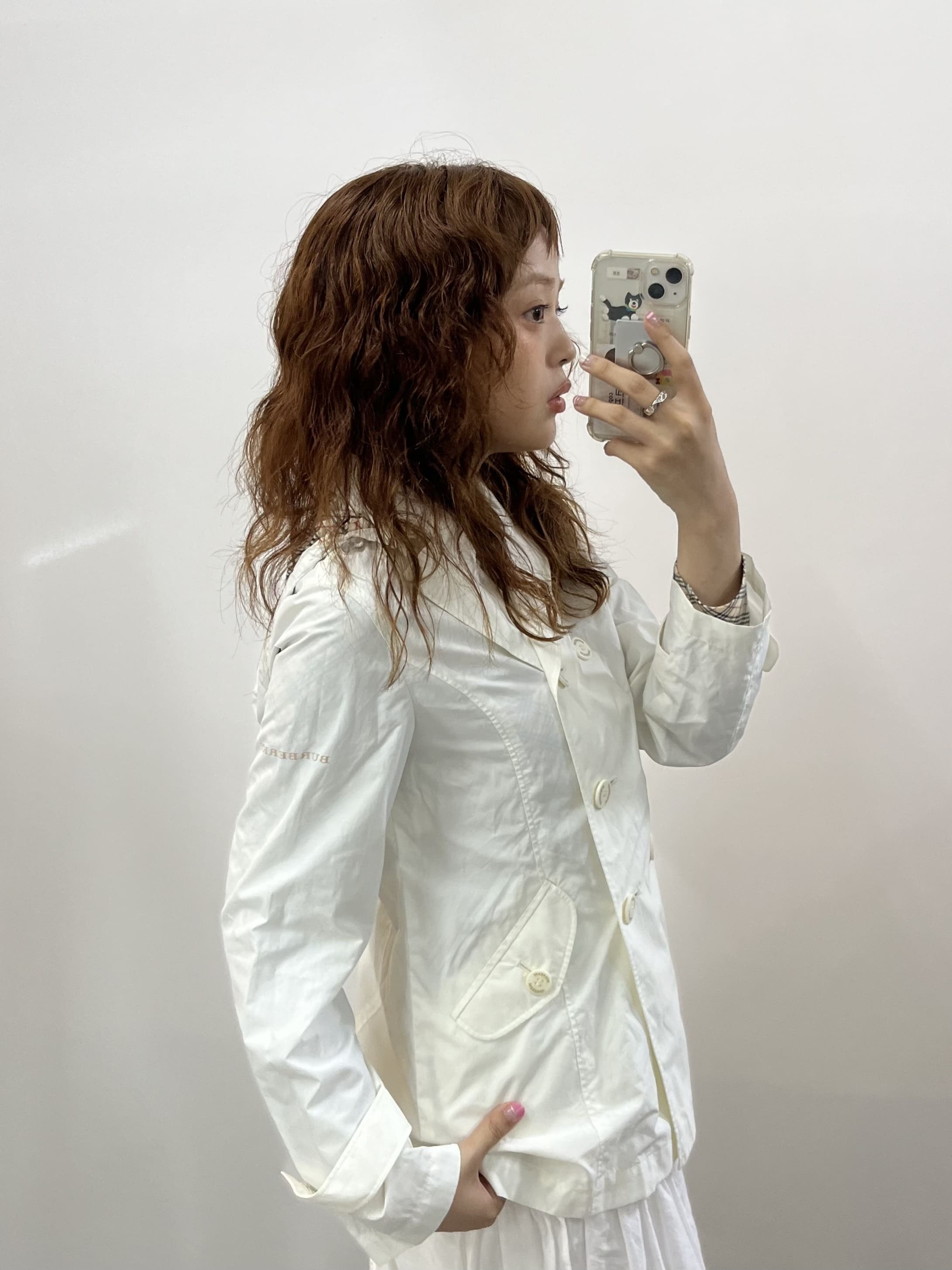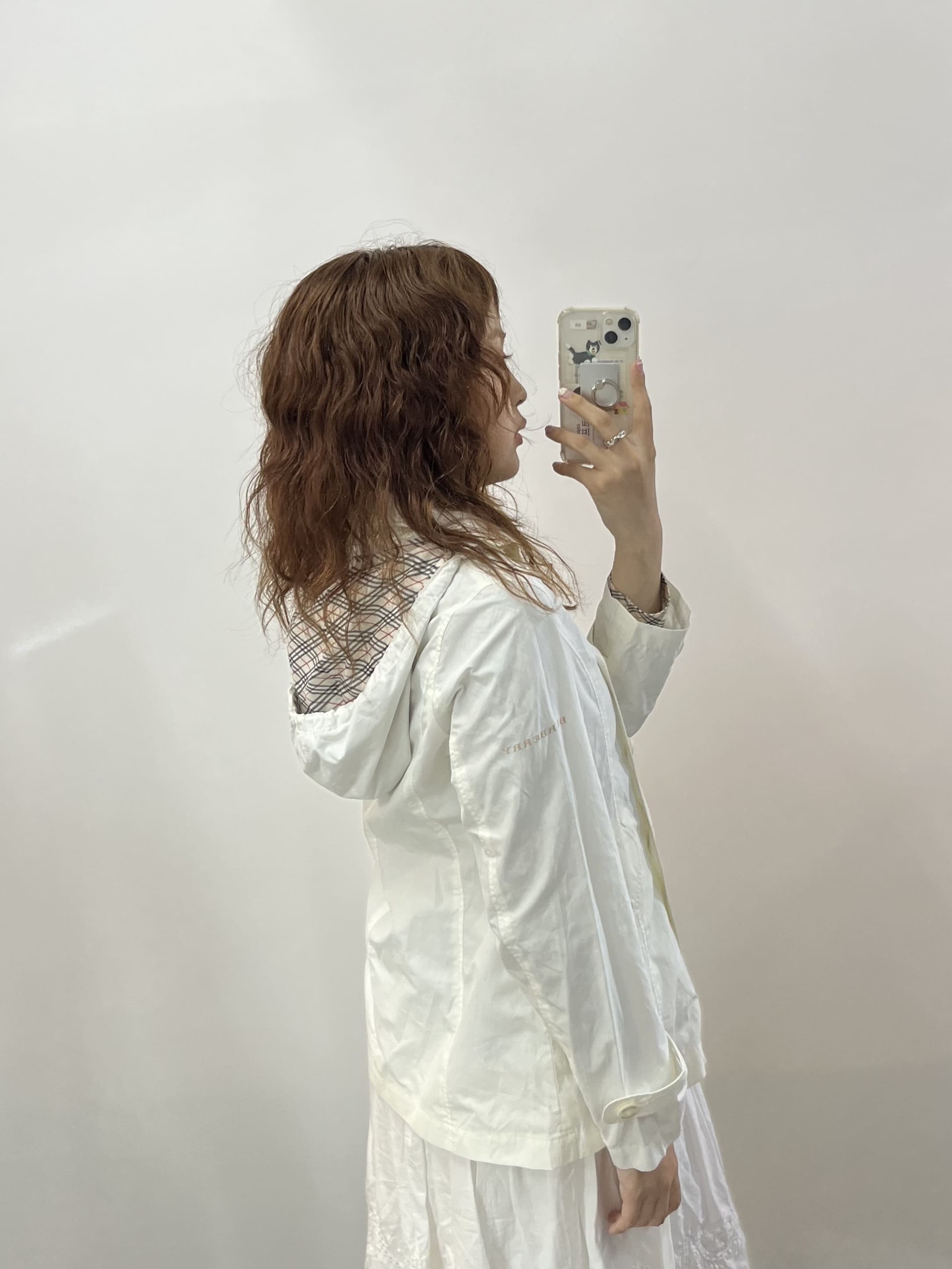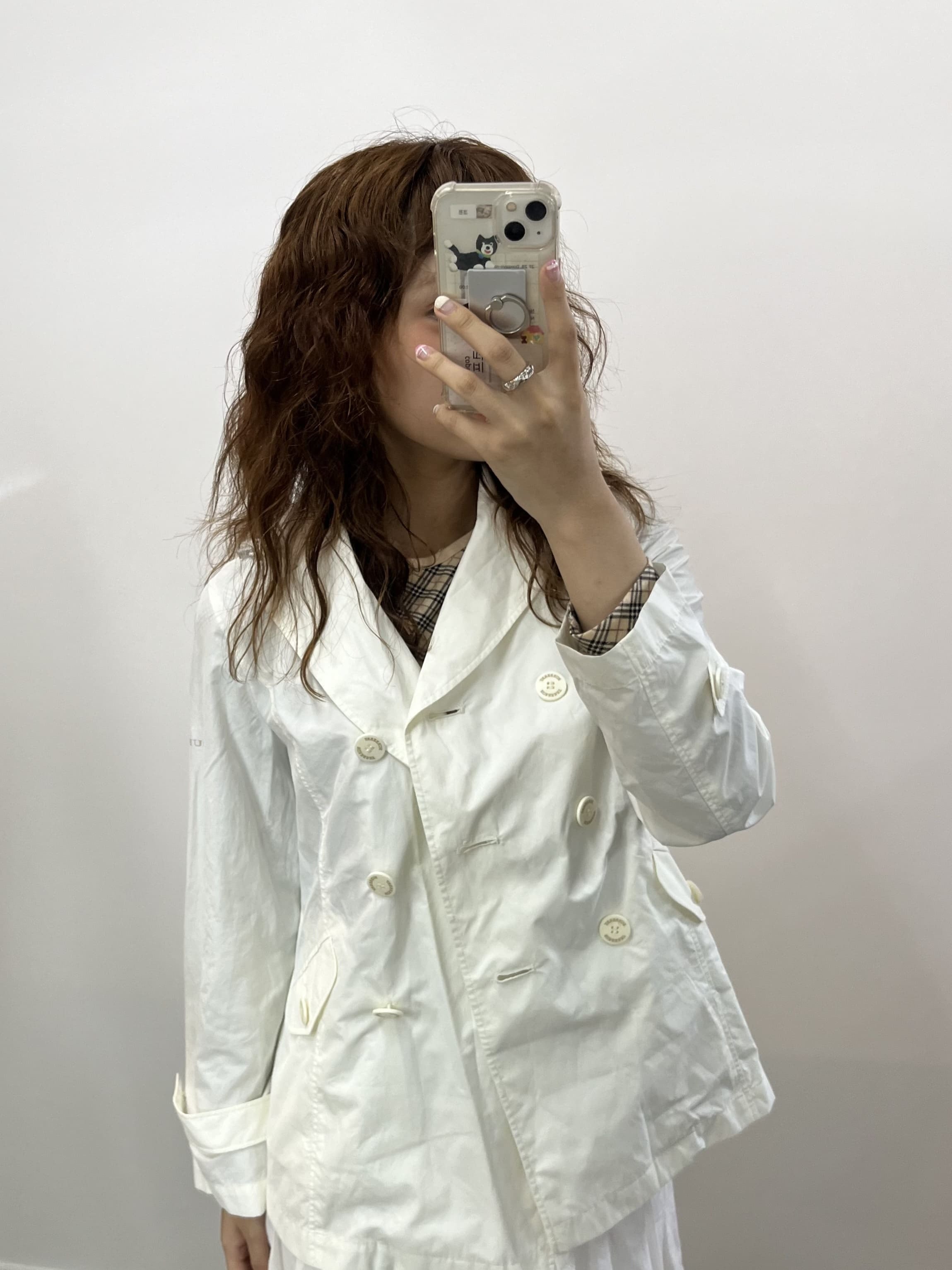 【BURBERRY LONDON】バーバリー ノヴァチェック切替薄手コットンナイロンダブルジャケット white