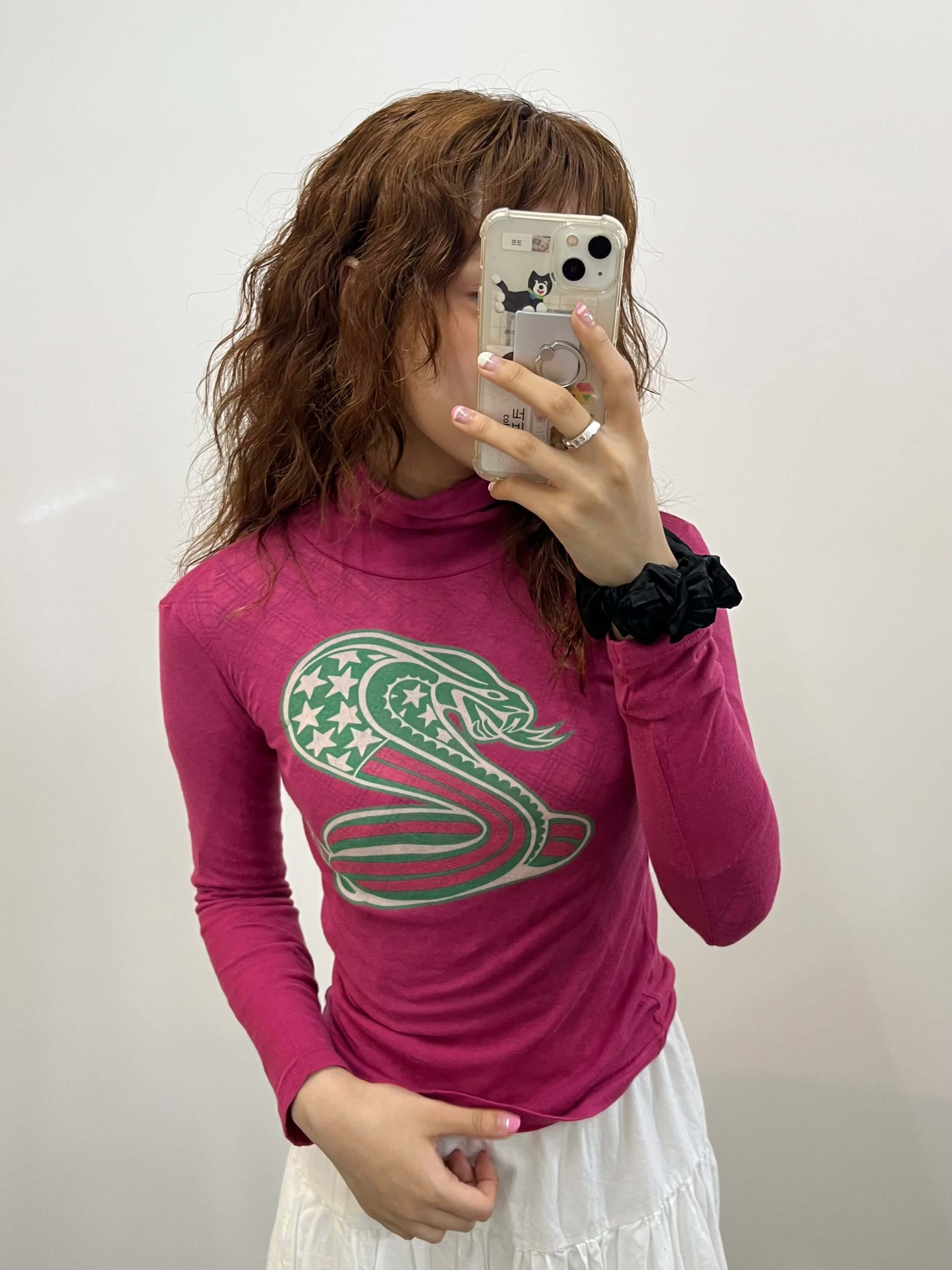 【HYSTERI GLAMOUR】スネークプリント タートルネック ロングTシャツ