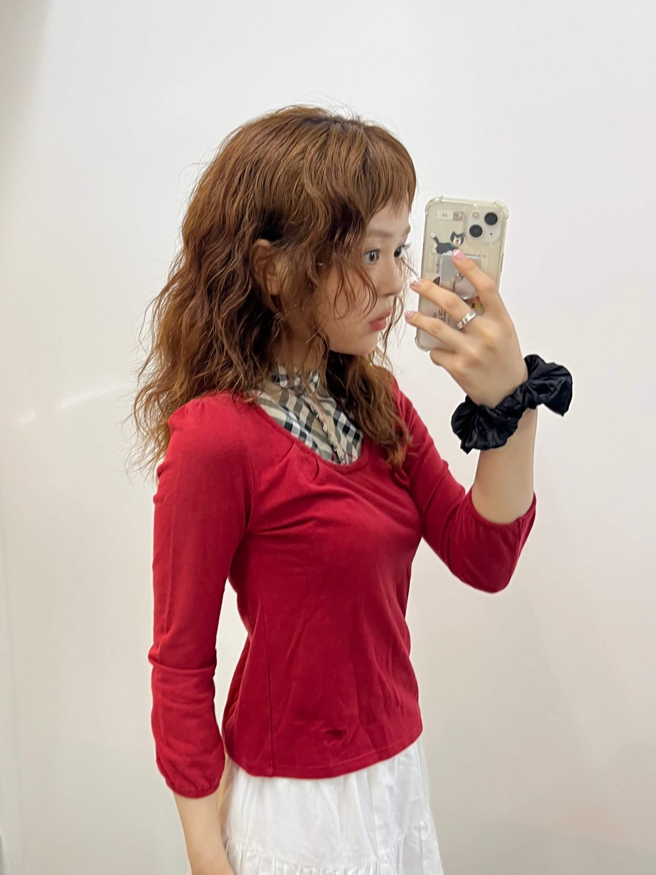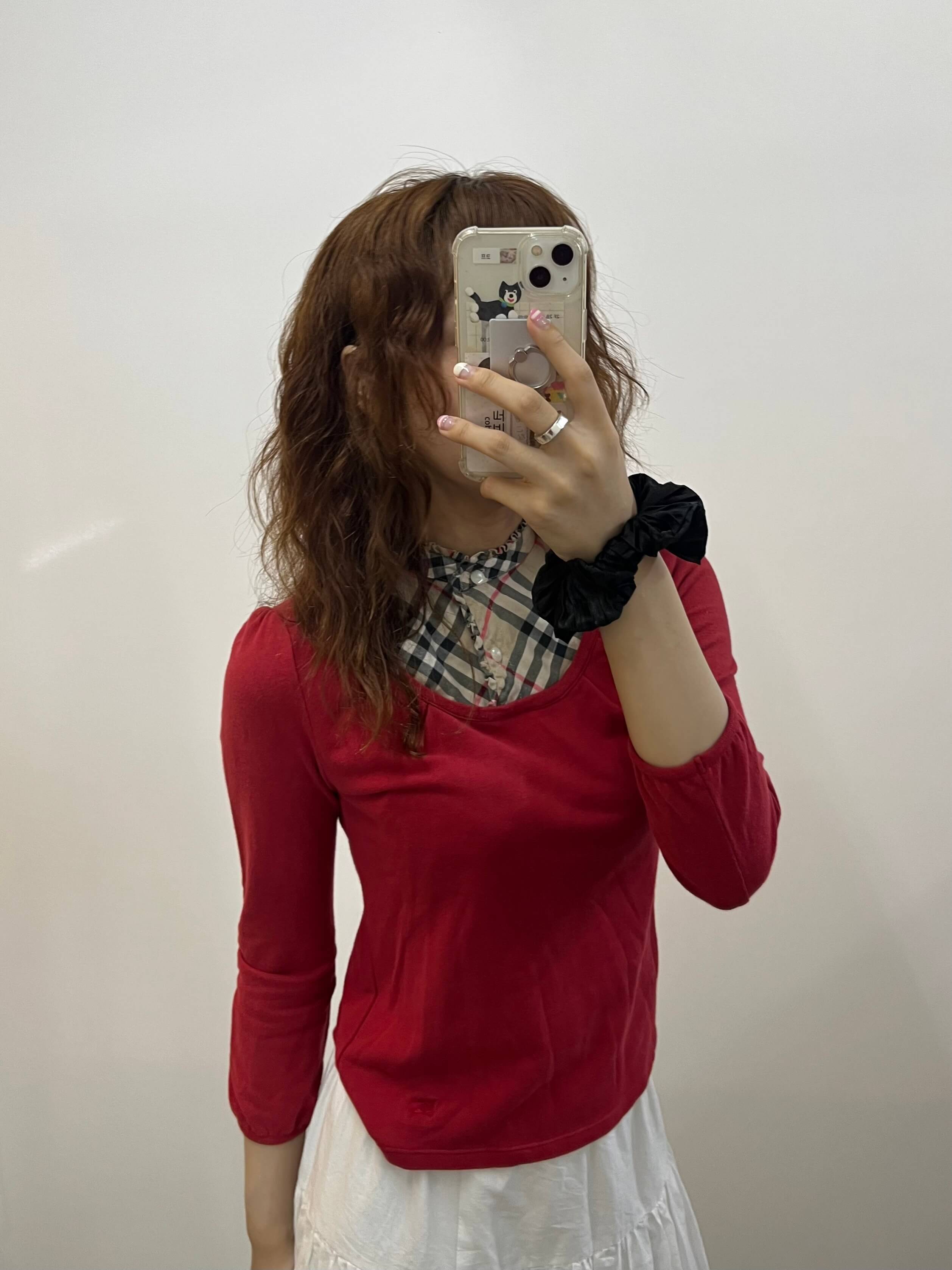 【BURBERRY LONDON】バーバリー ノヴァチェックシャツドッキング七部丈スリムカットソー red