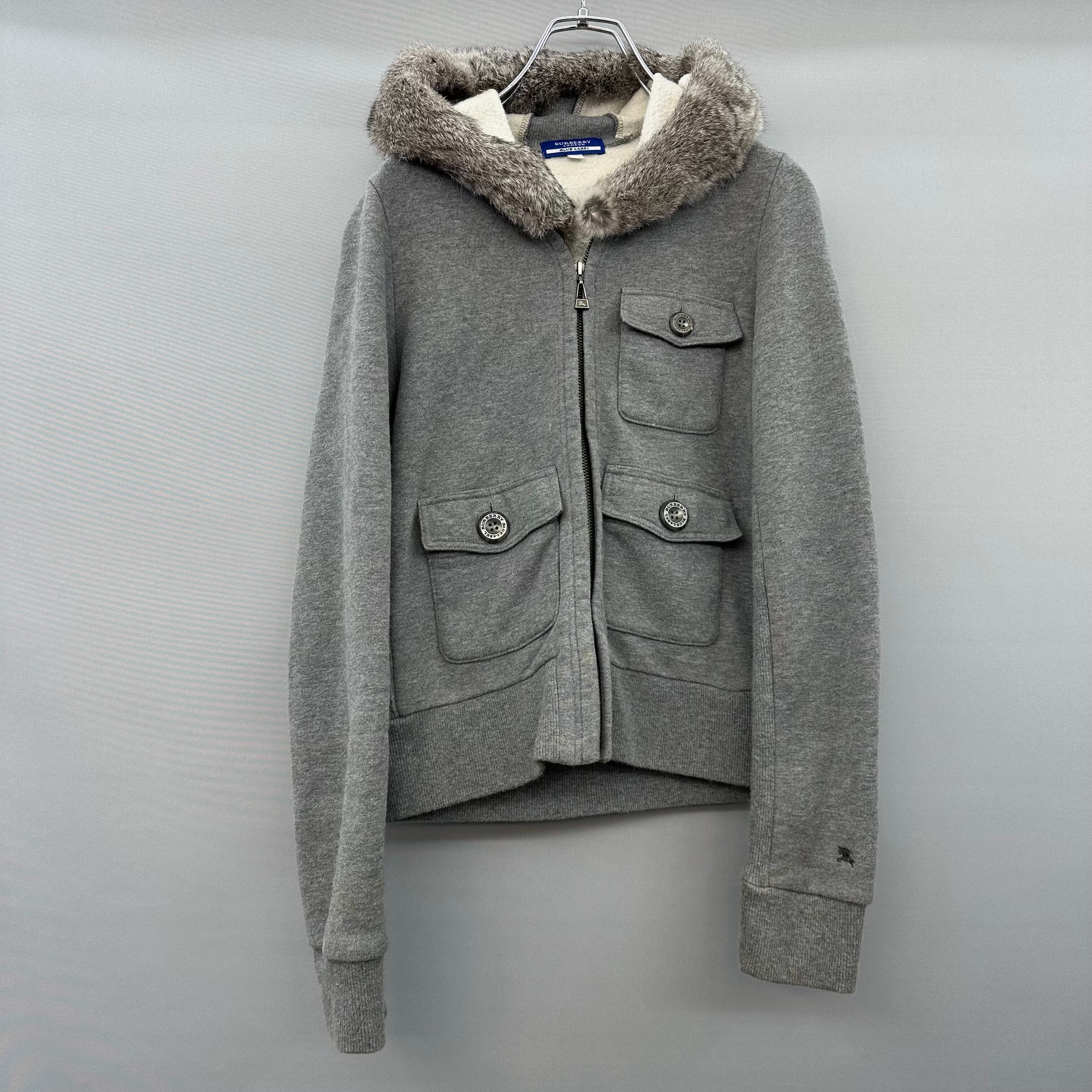 【BURBERRY BLUE LABEL】バーバリー リアルファー ジップアップギミックパーカー