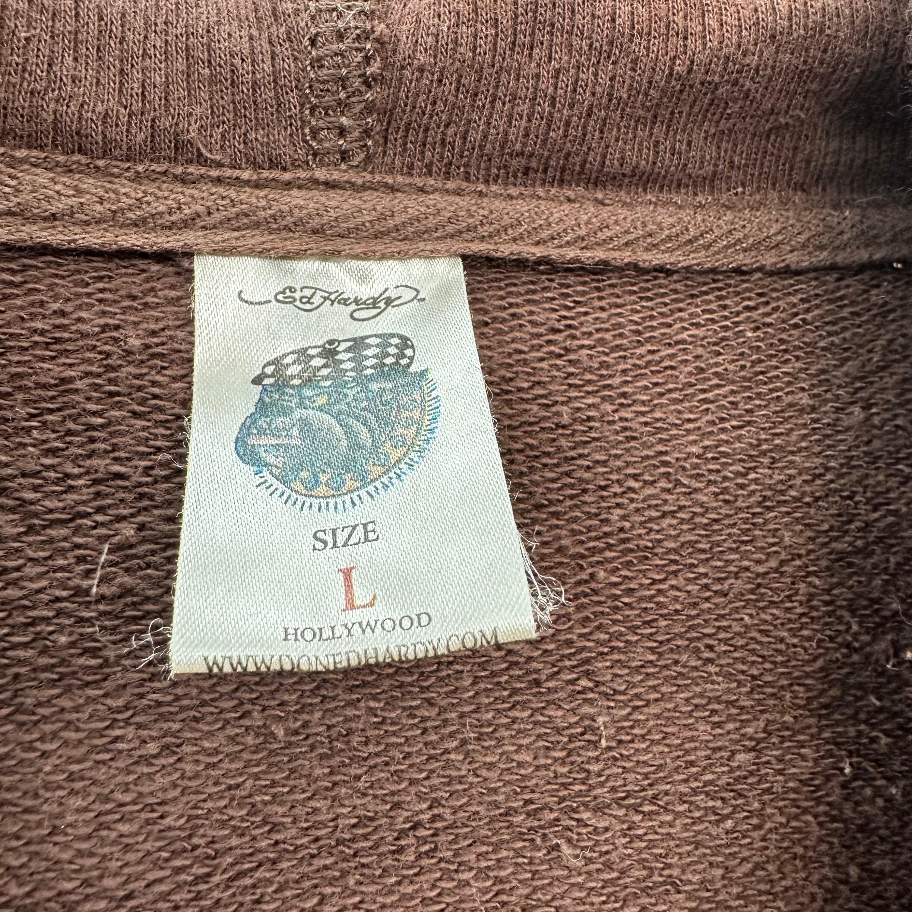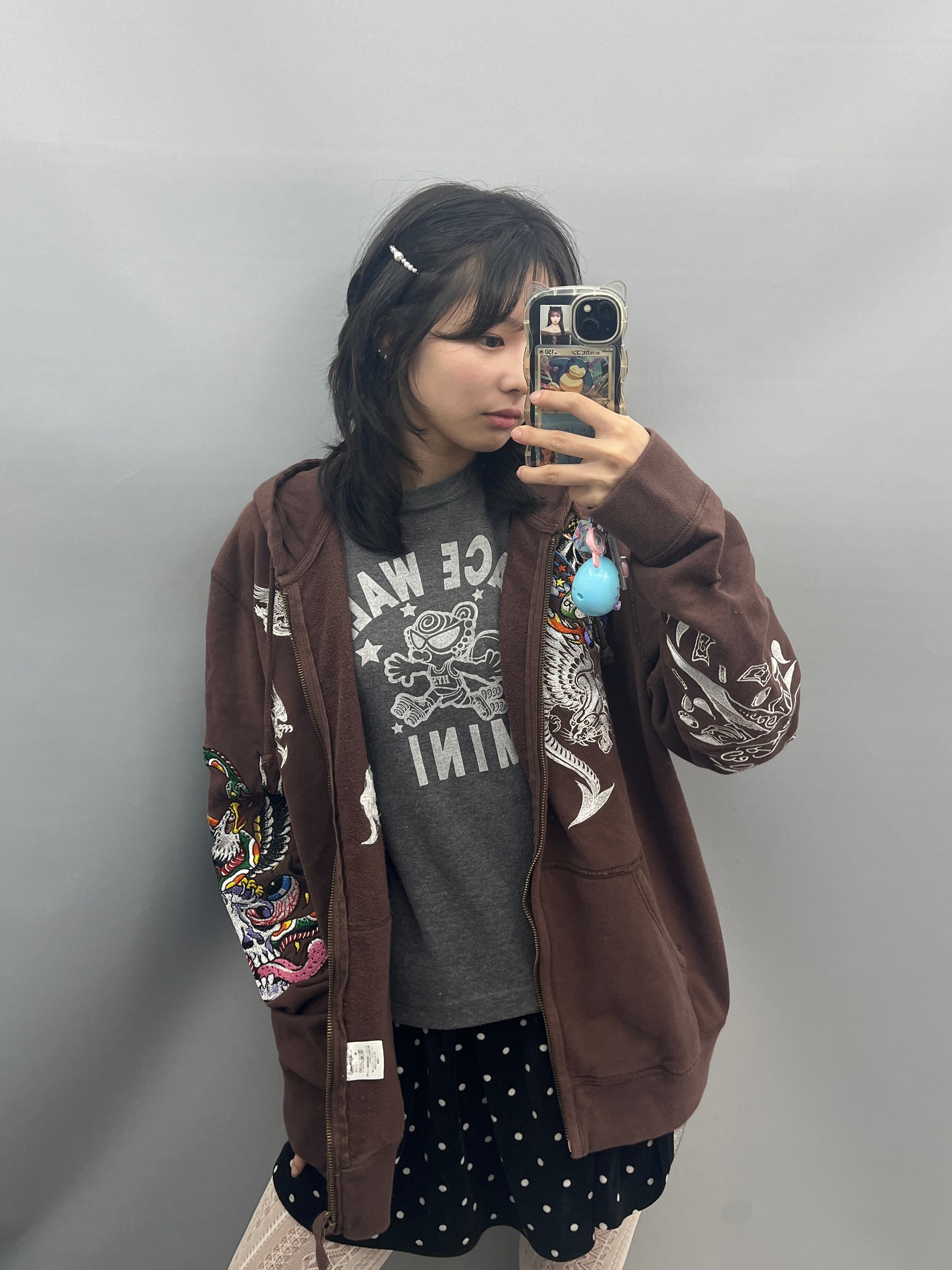 【Ed Hardy】エドハーディ EMBROIDERED HOODY LA DEATH OR GLORY ジップアップオーバーパーカー