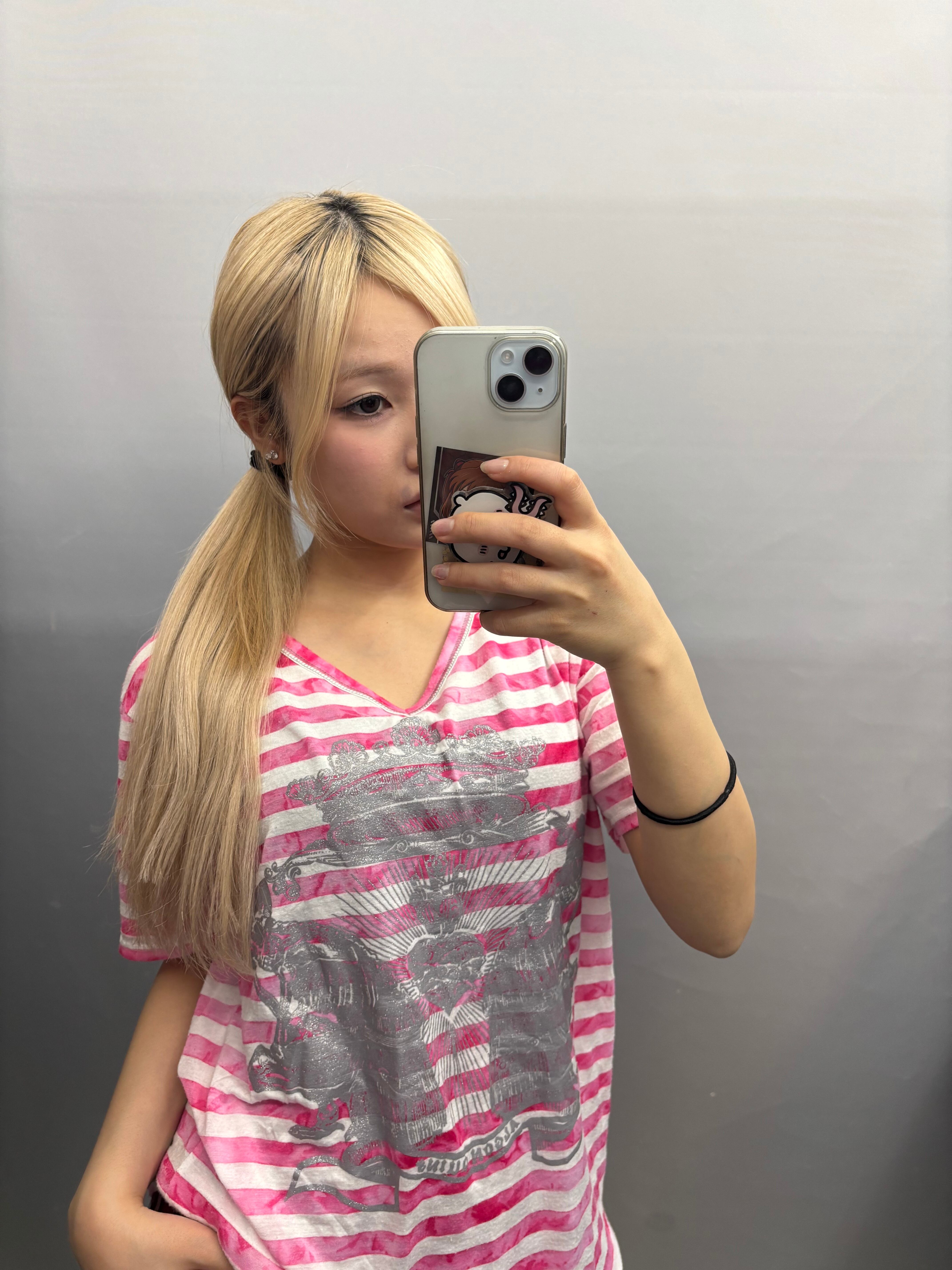 【ALGONQUINS】アルゴンキン Y2K ラメプリントボーダーVネックTEE