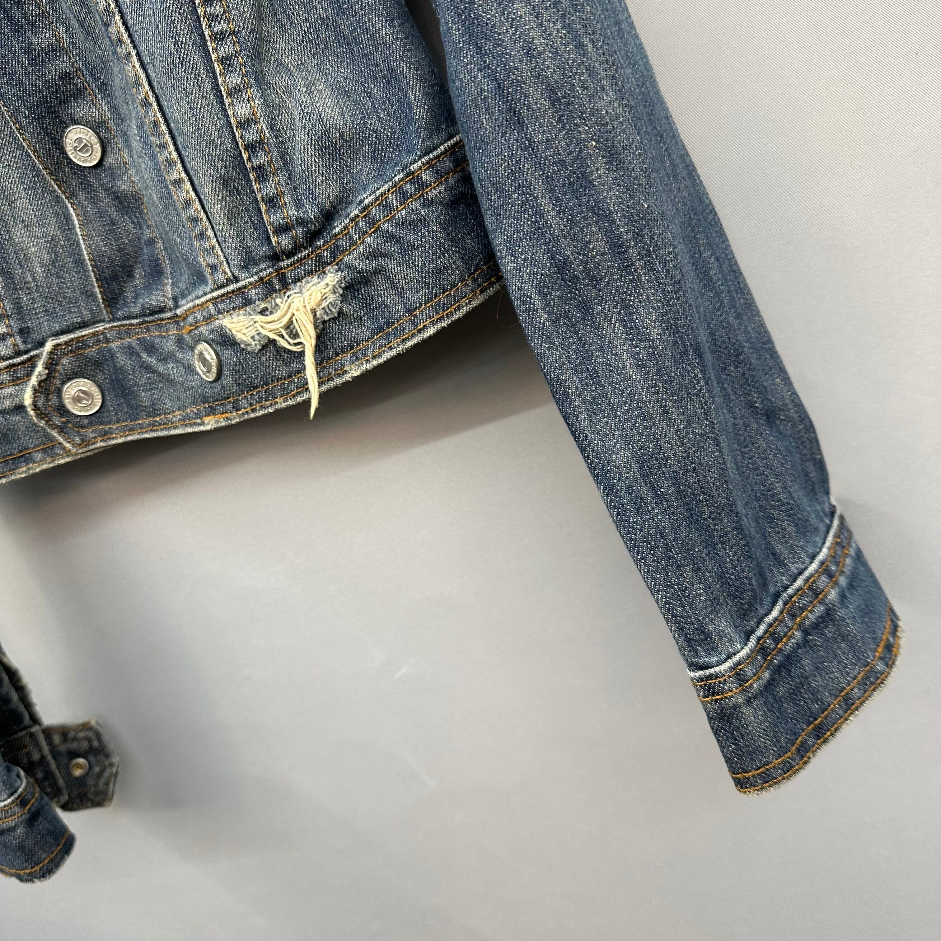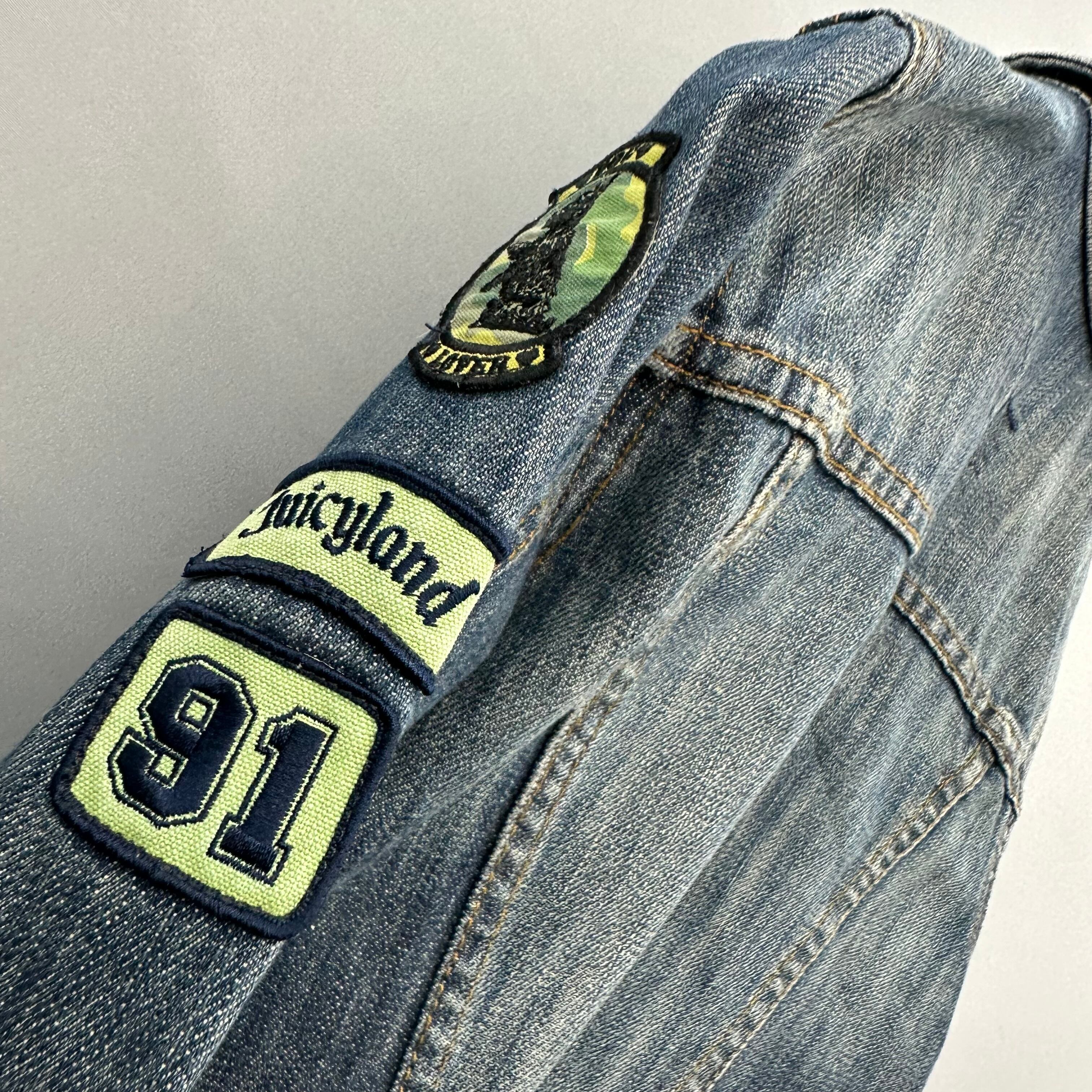 【JUICY COUTURE JEANS】ジューシークチュール U.S.A製 Y2K 缶バッジ&ワッペンデザインスリムデニムジャケット