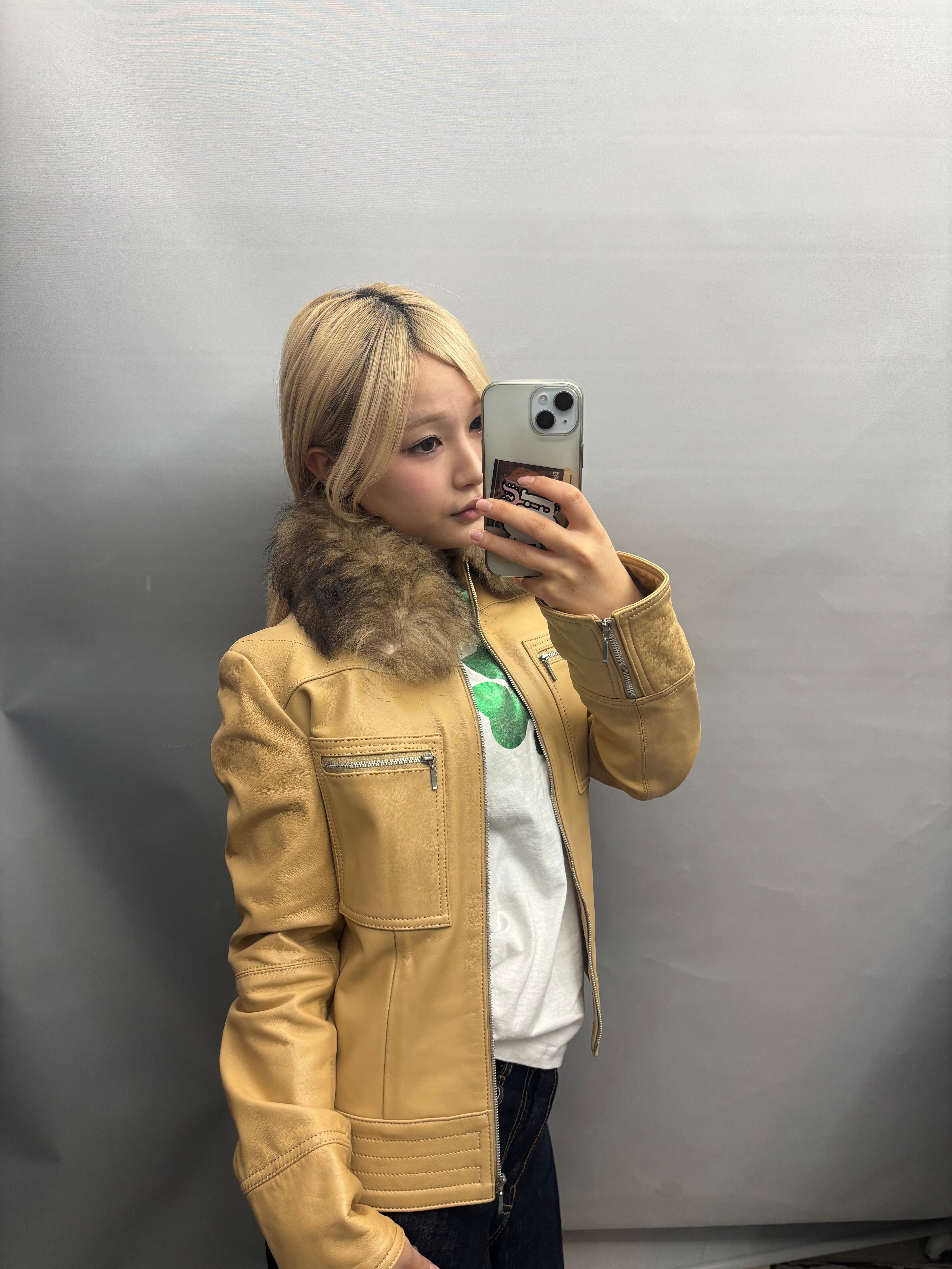 ※【FAVRILE】羊革×フォックスファージップアップジャケット