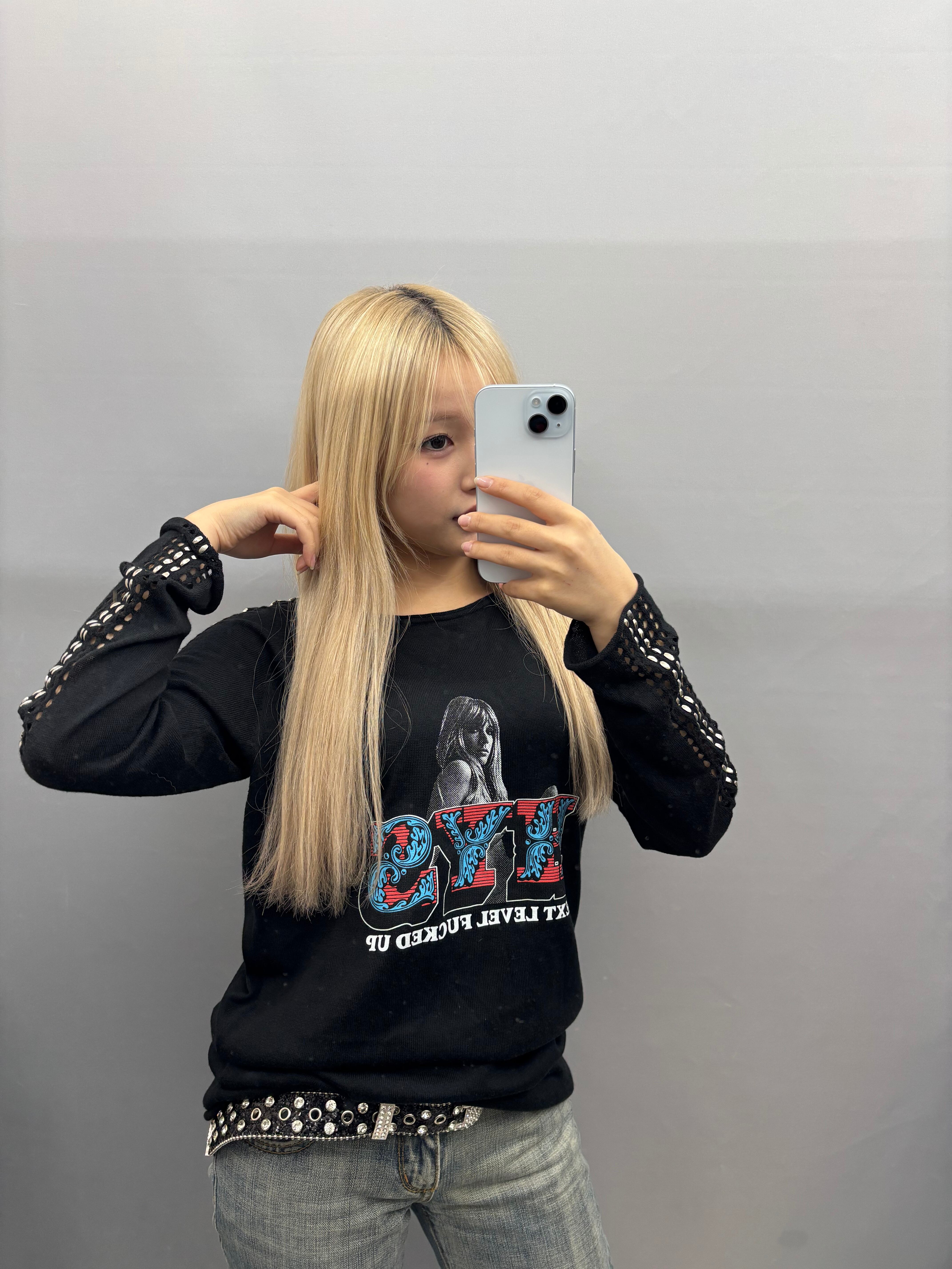 【HYSTERIC GLAMOUR】ヒステリックグラマー HYSヒスガールプリントスタッズスリーブニットソー