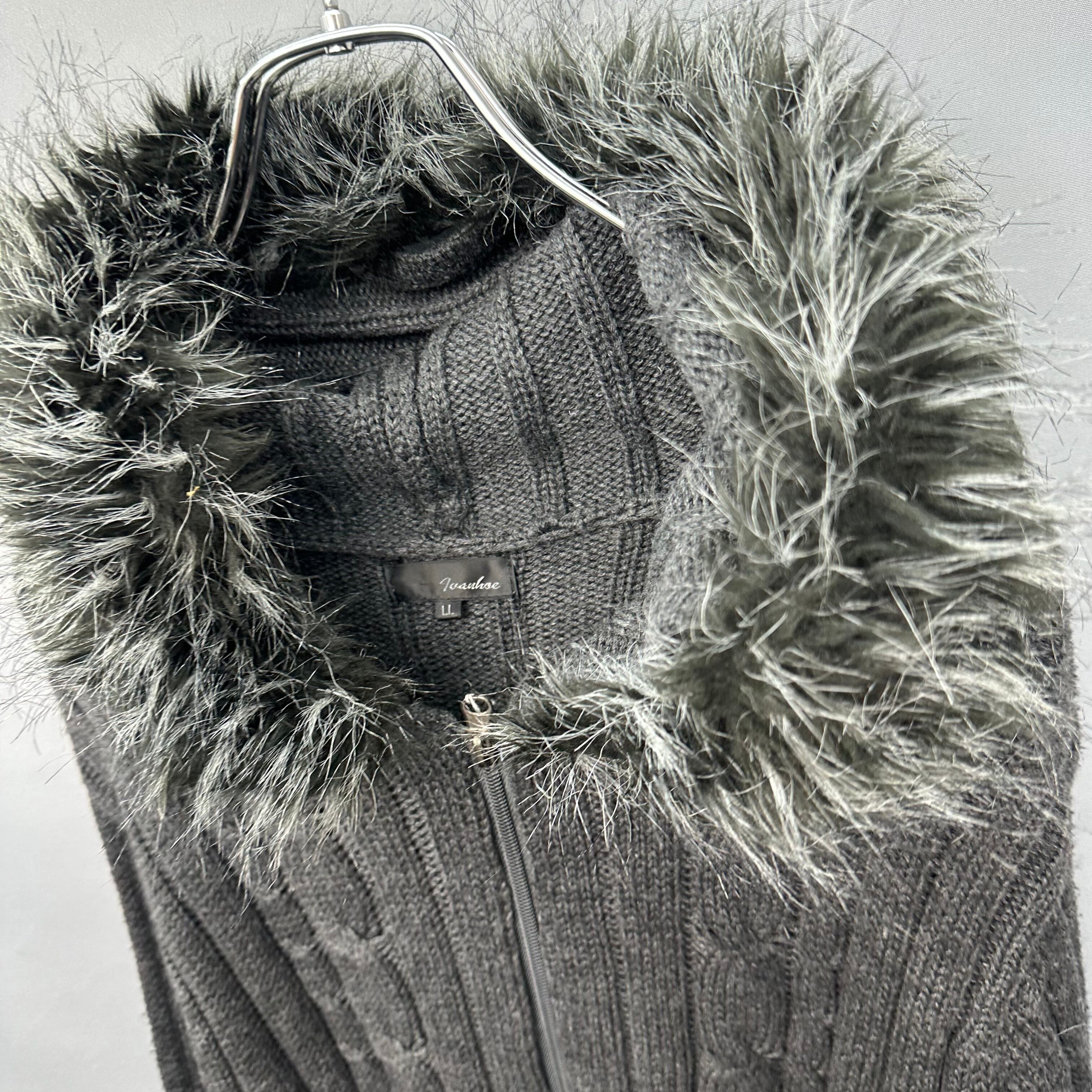 【Y2K】フェイクファーボリュームフードジップニットコート