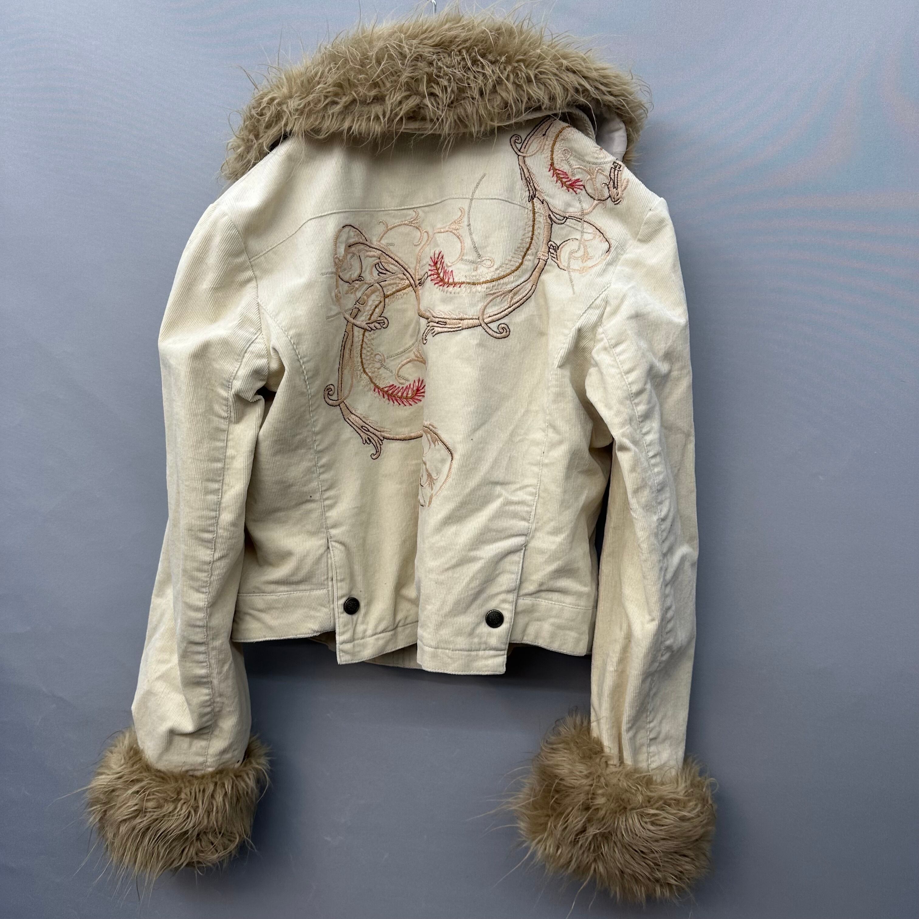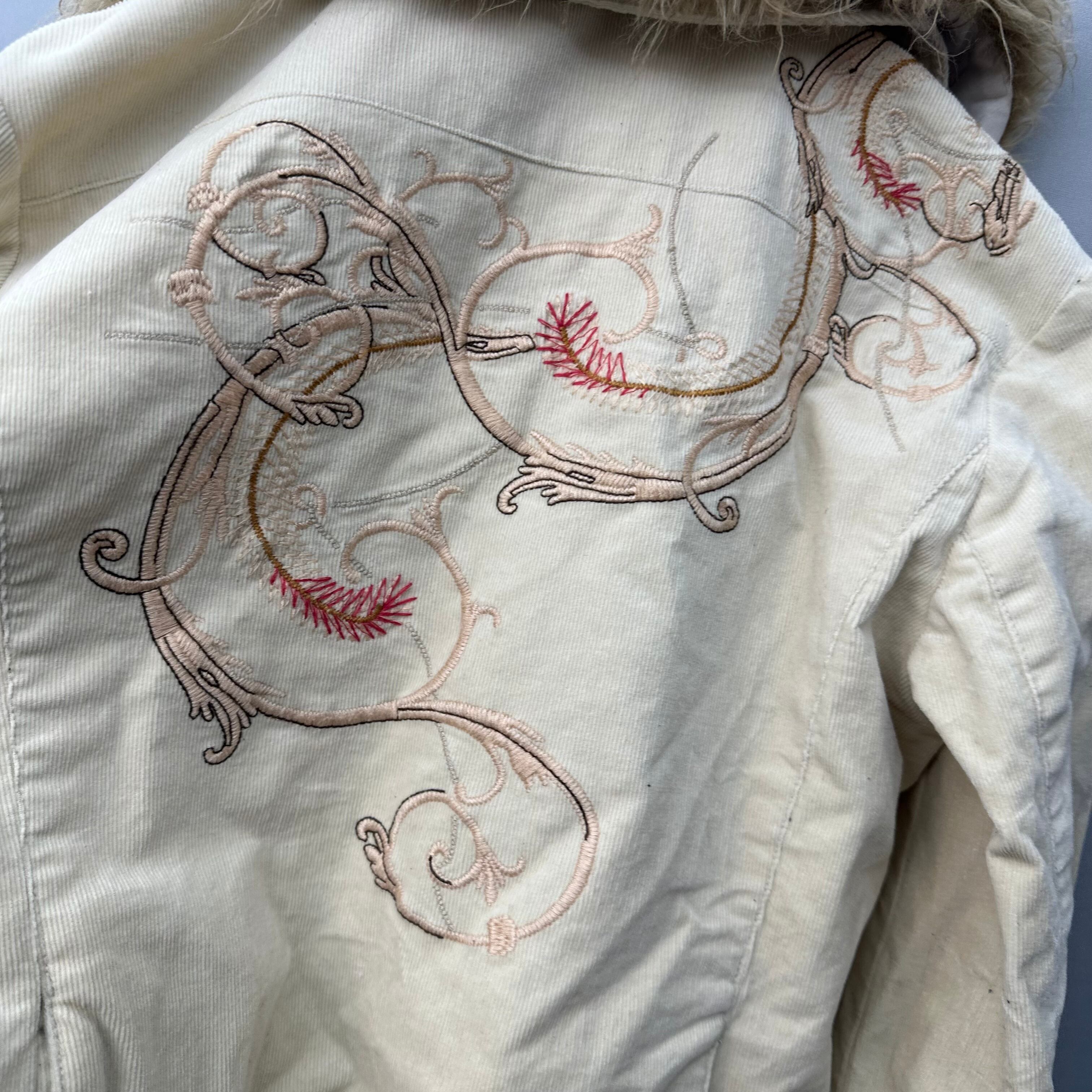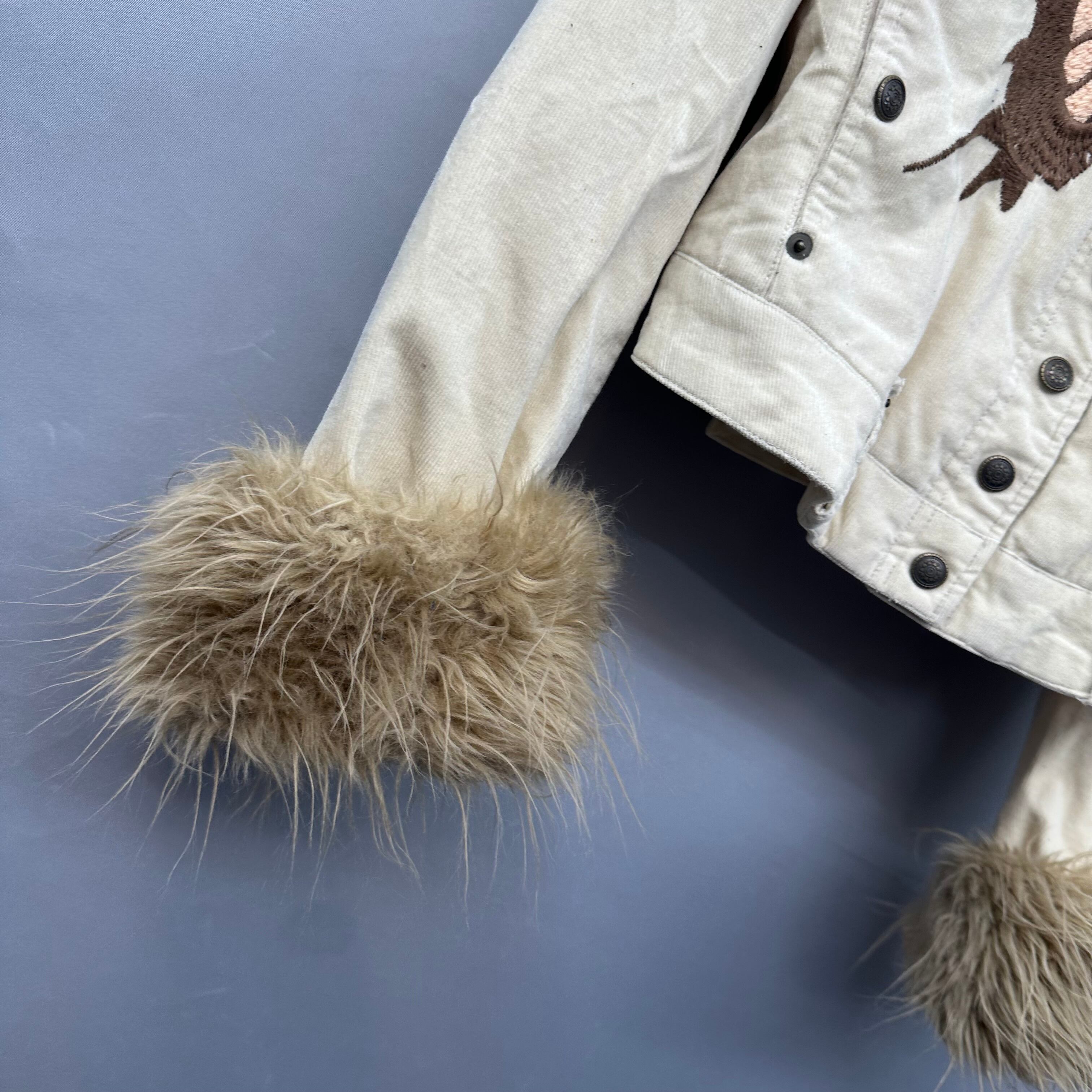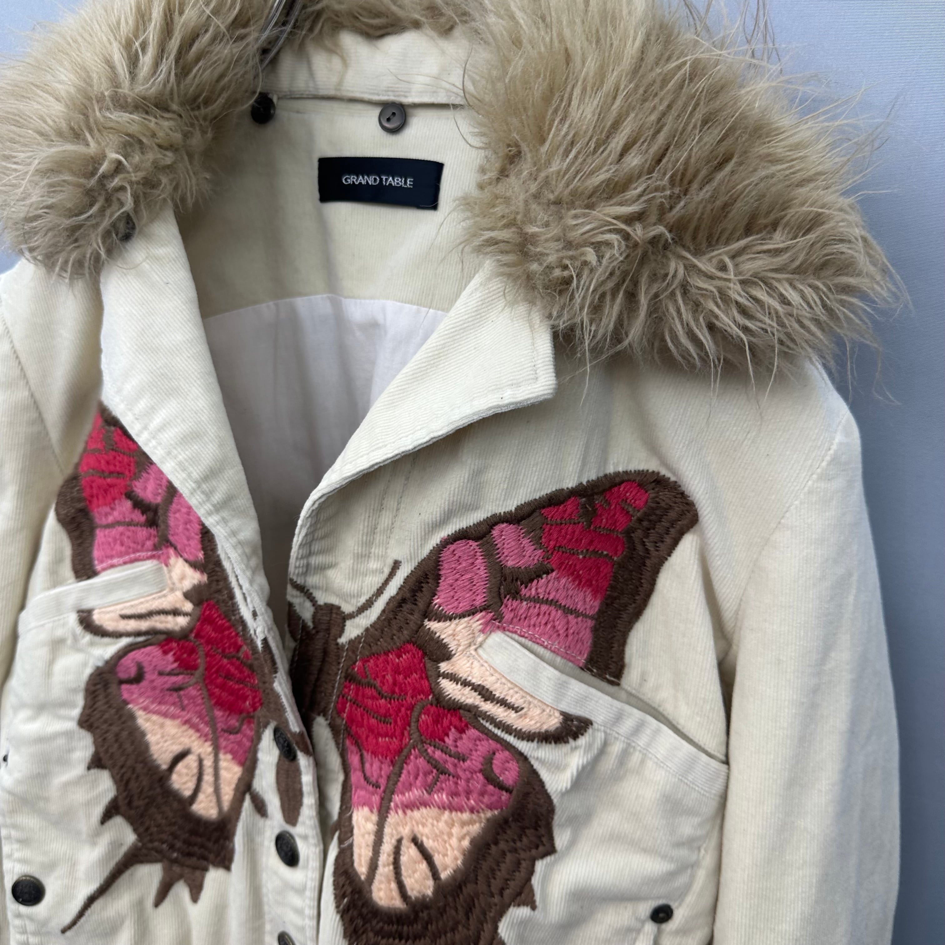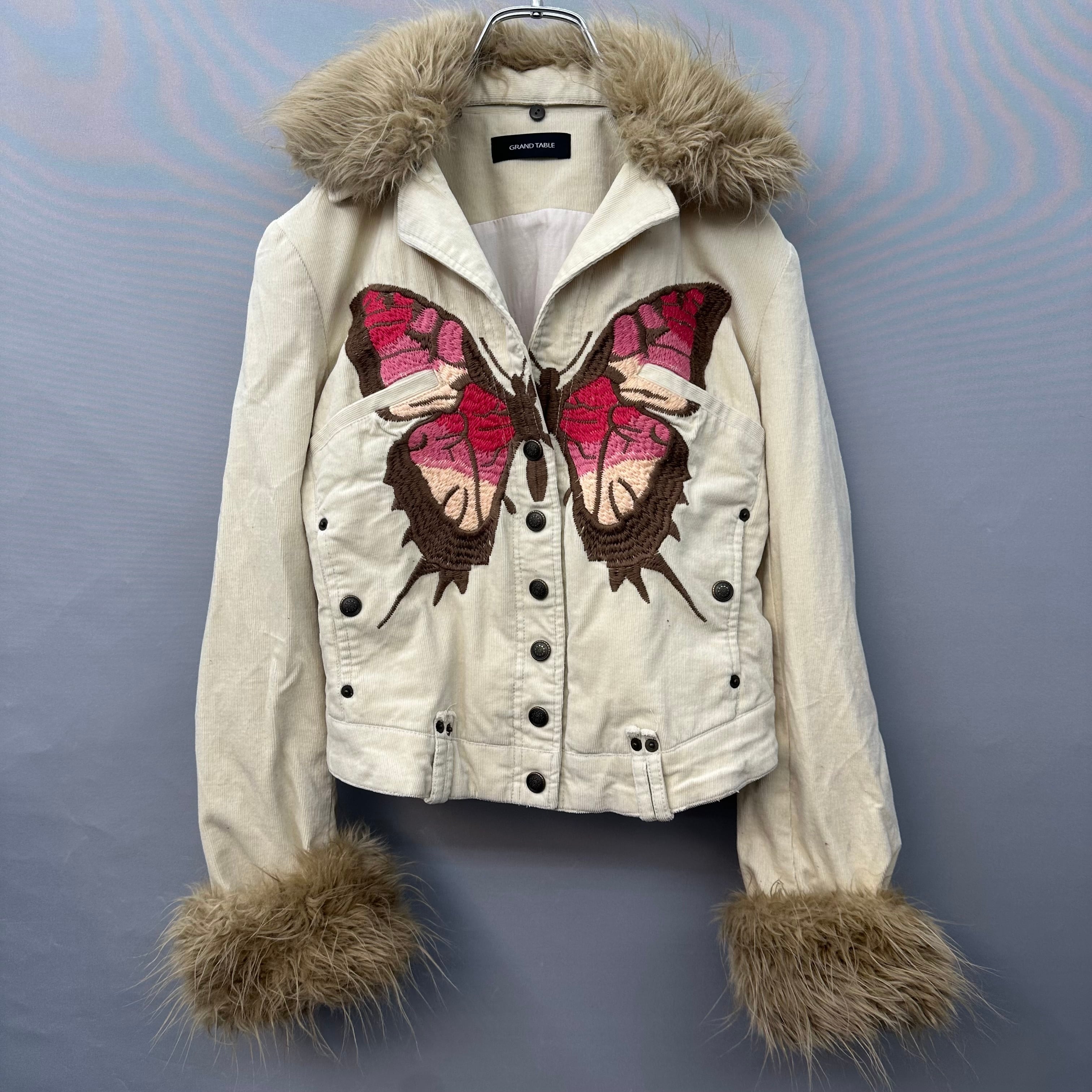 【GRAND TABLE】y2k ファー切替バタフライ刺繍コーデュロイジャケット