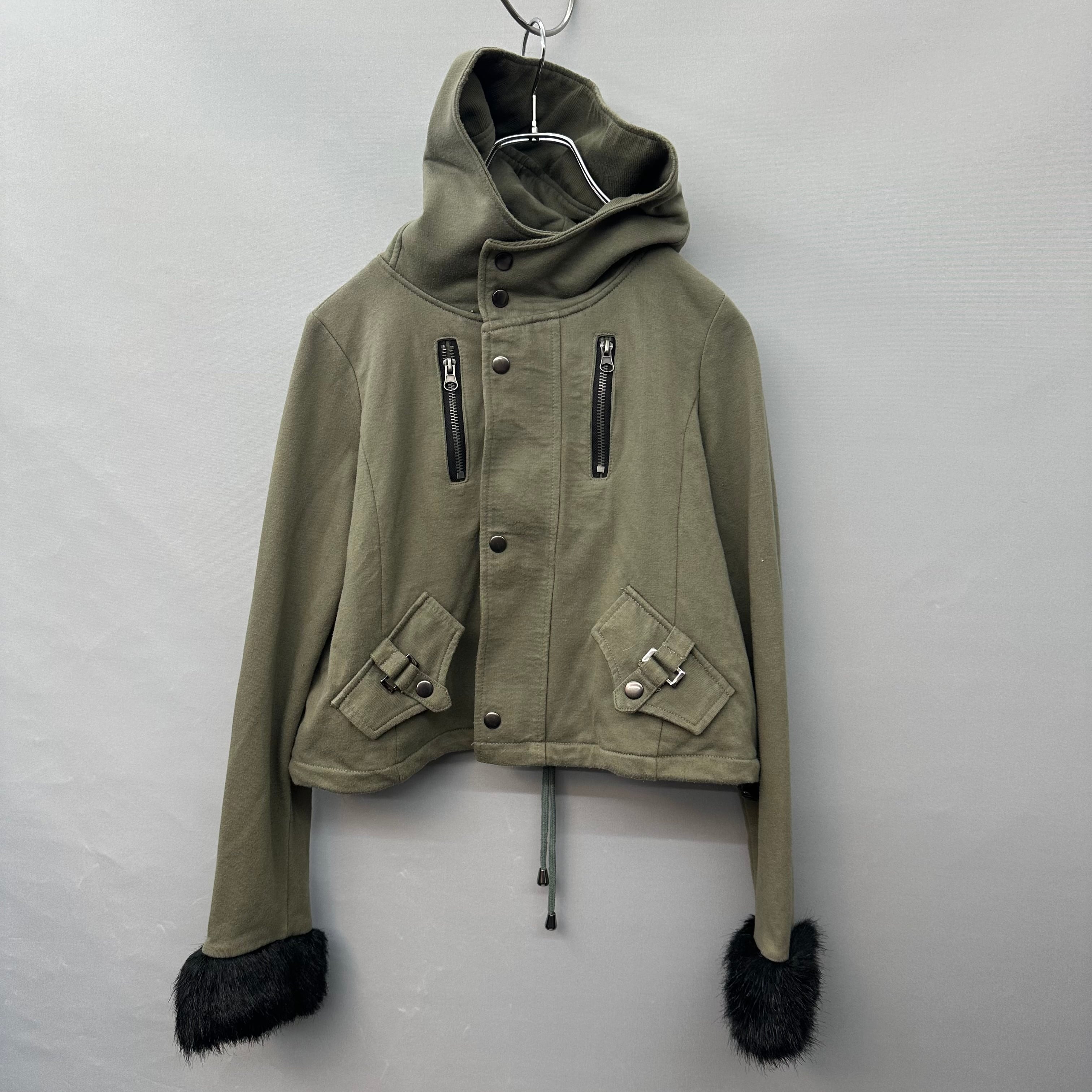 【INDIVIDUALY VARIOUS】袖ファー切替コットンジップフーデットブルゾン 平成ギャル Y2K