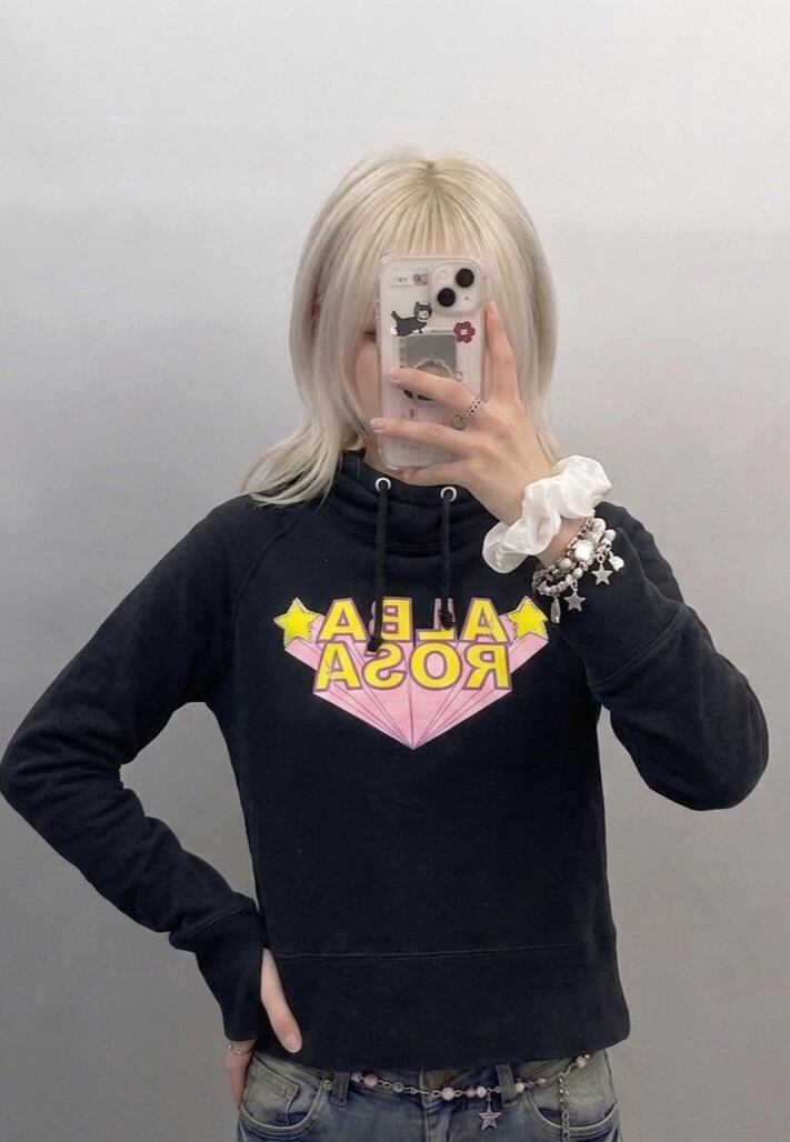 【ALBA ROSA】00s Y2K 日本製 平成ギャル キラキラプリントモックネックパーカー