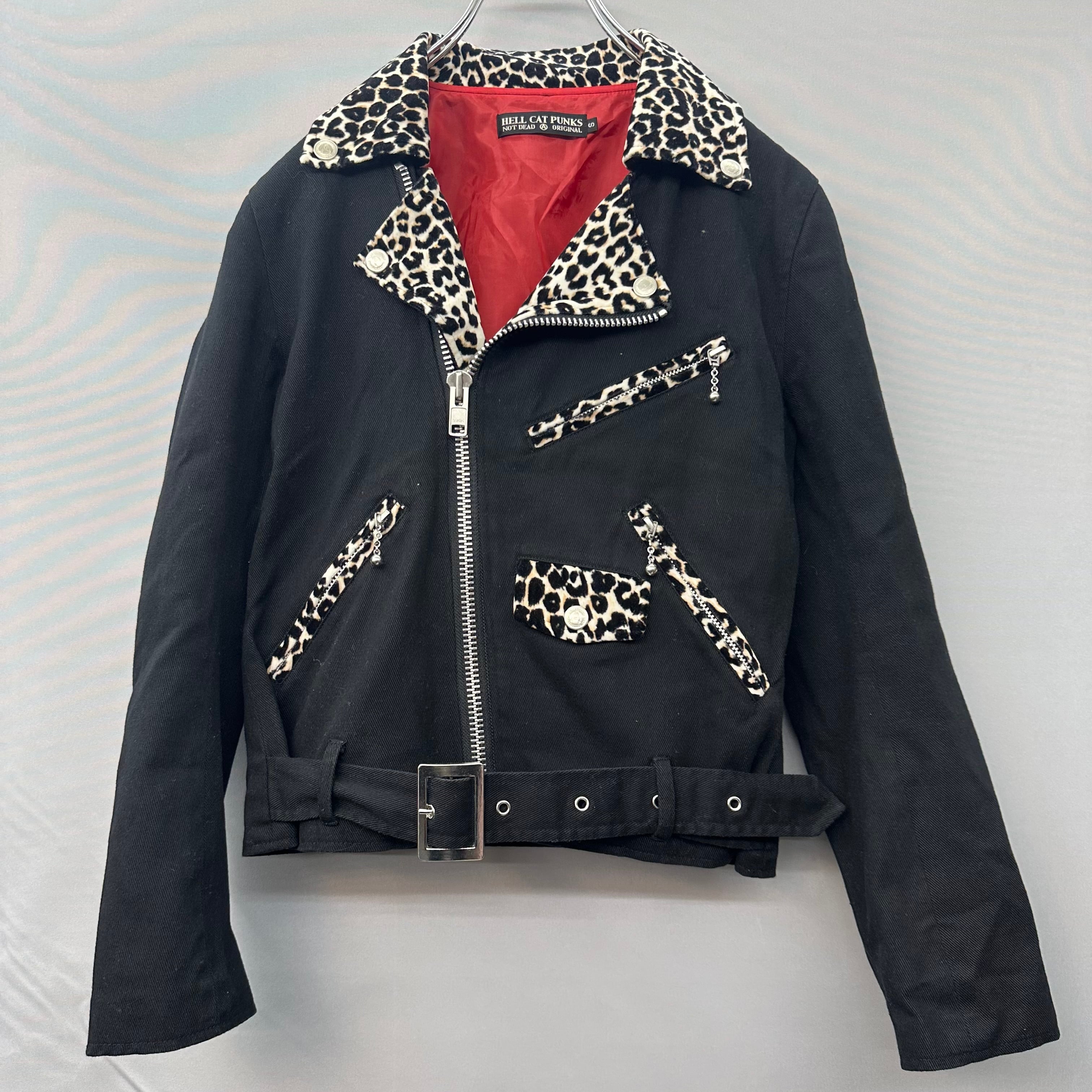 【HELLCATPUNKS】ヘルキャットパンクス レオパード切替コットンライダースジャケット