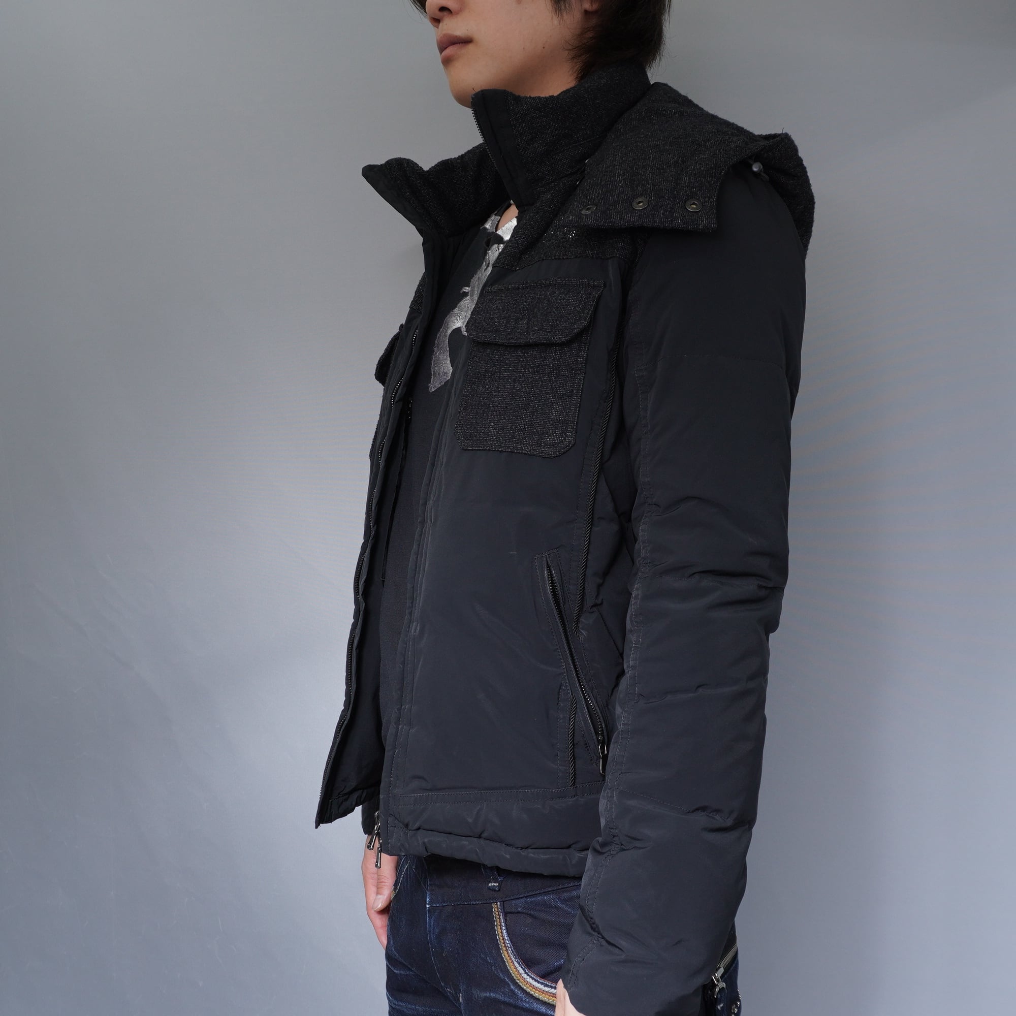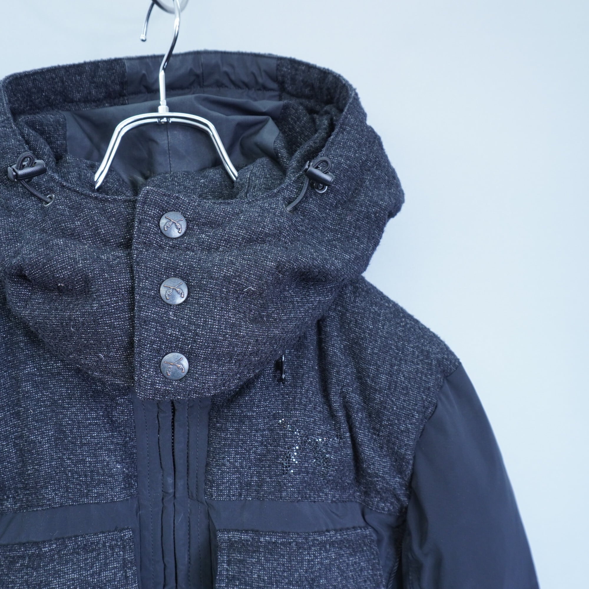 【roar】00's クロスガンスワロフスキーウール切替ハイネックフーデットダウンジャケット