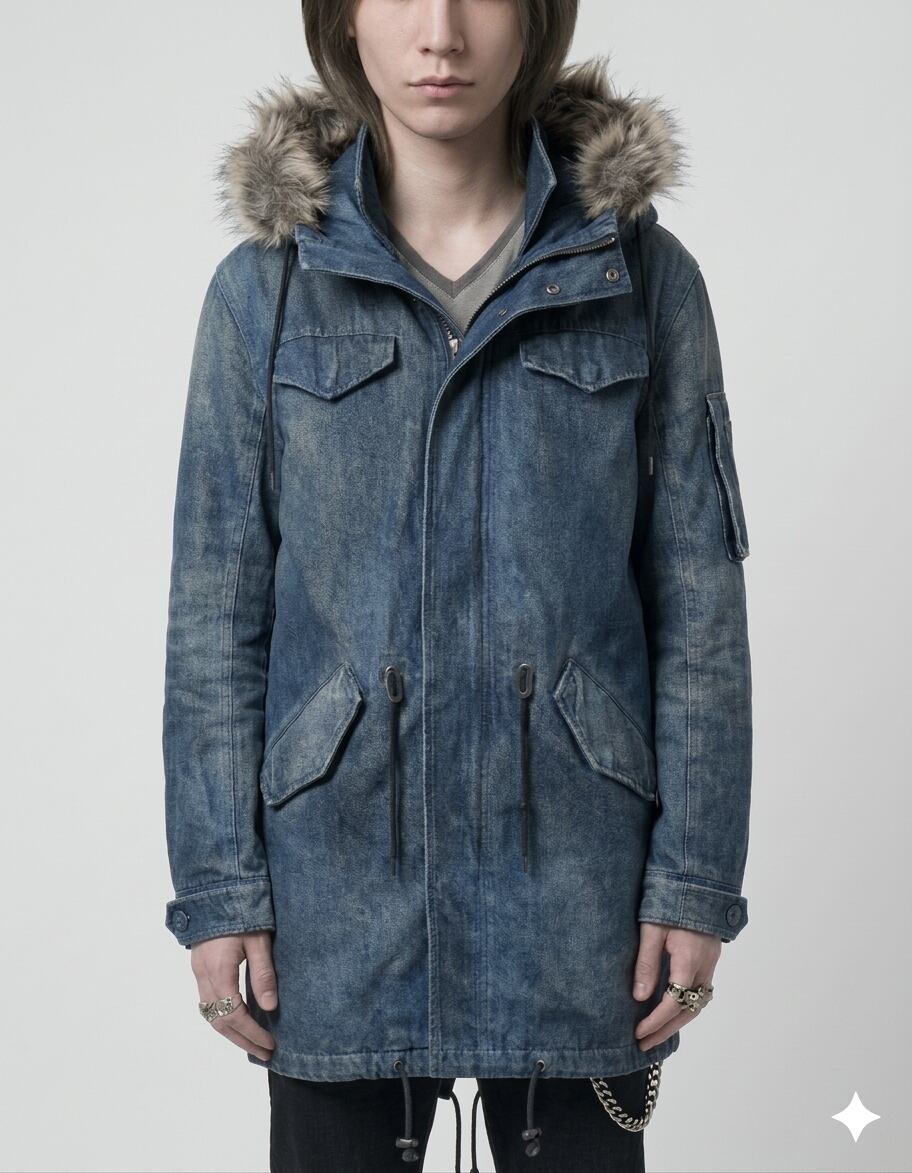 【TORNADO MART】ヘアリープリントフェイクファーモッズコート