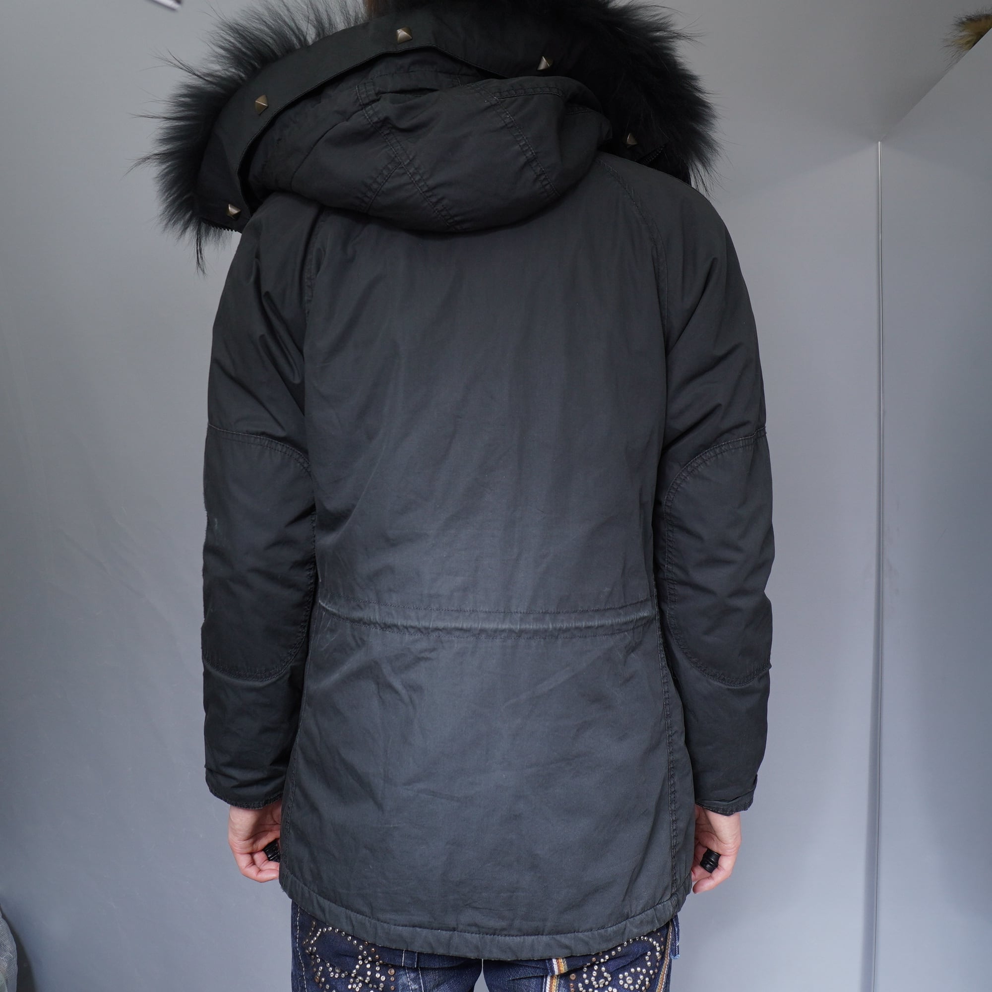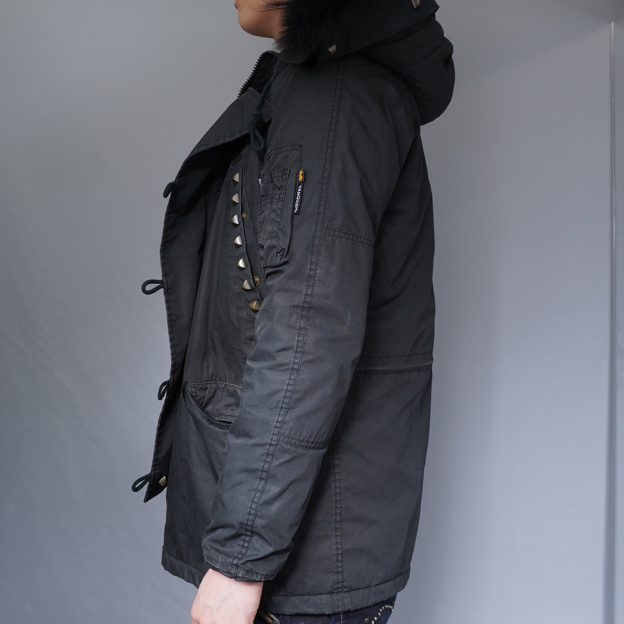 【VANQUISH × ALPHA INDUSTRIES】スタッズデザインブラックファー N-3Bコート
