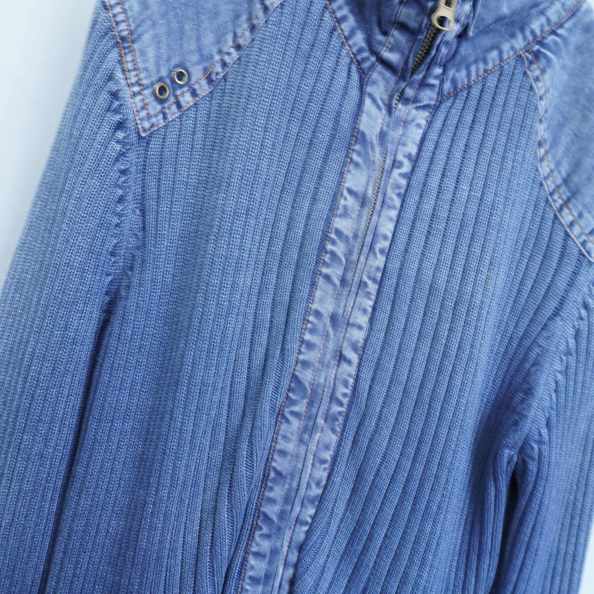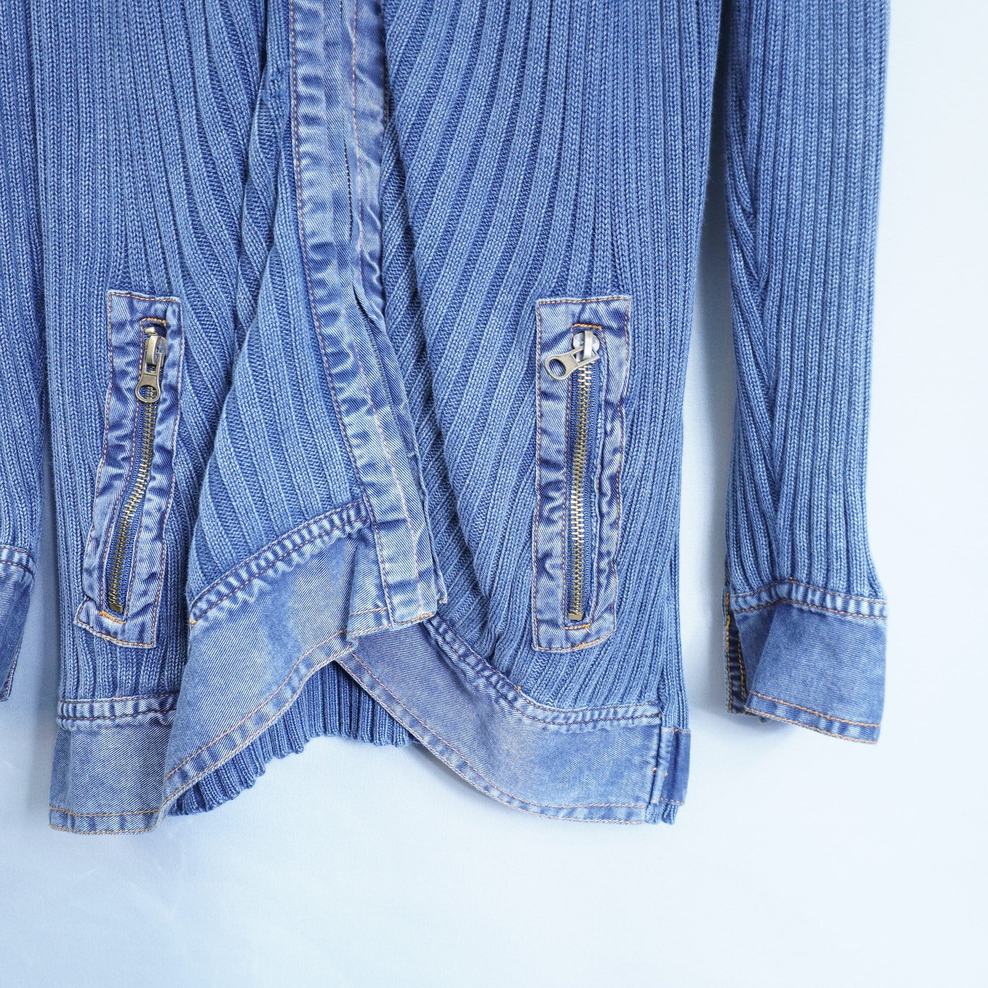 【Y2K】デニム切替コットンリブダブルジップドライバーズニット