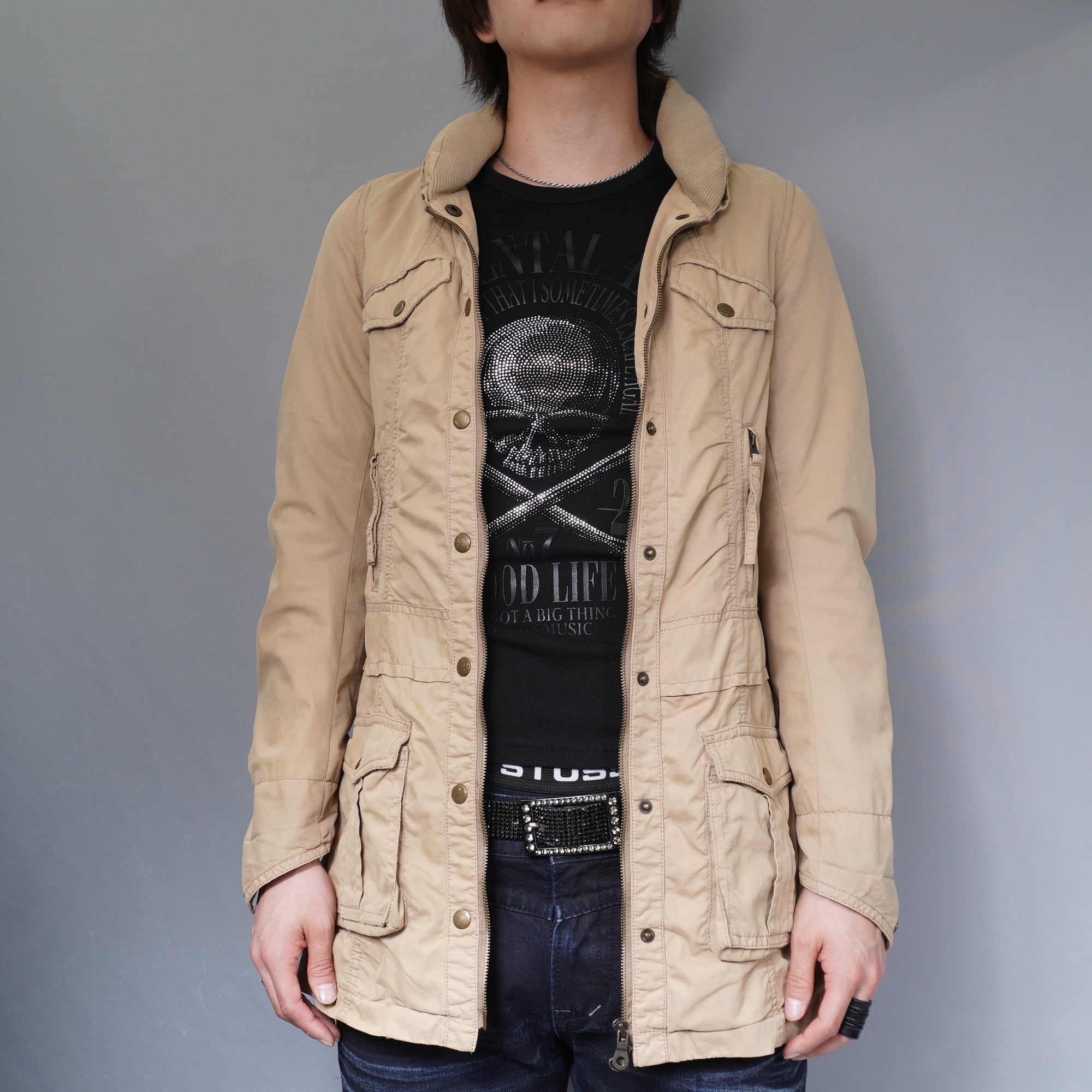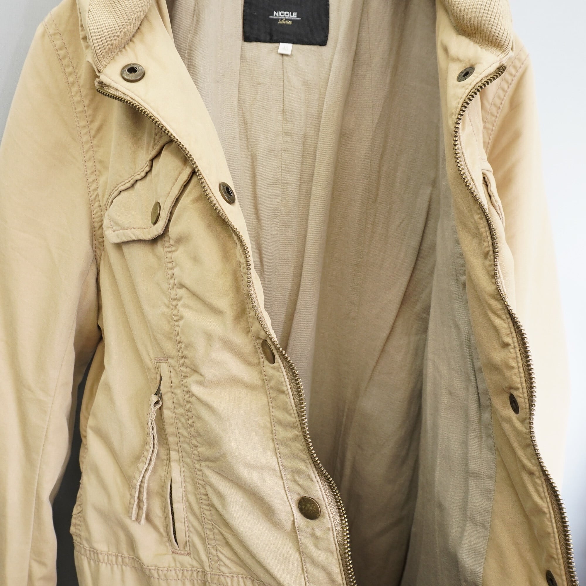 【NICOLE】Y2K ナイロン混コットンスリムジップロングジャケット