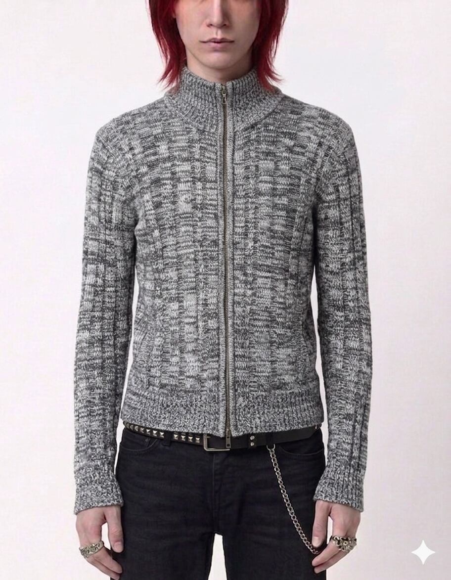 【GOSTAR DE FUGA】Y2K アクリル混ウール ハイネックジップドライバーズニット