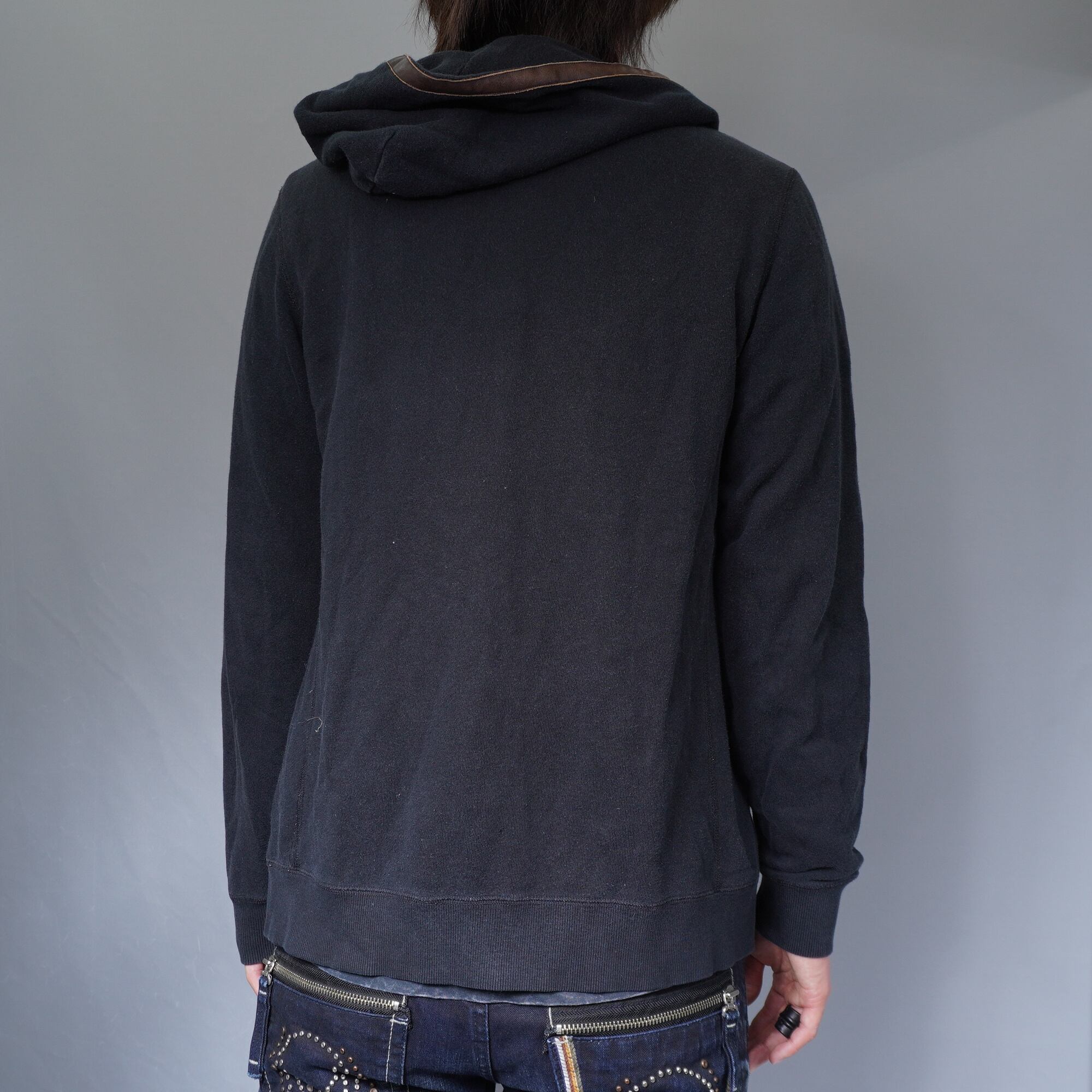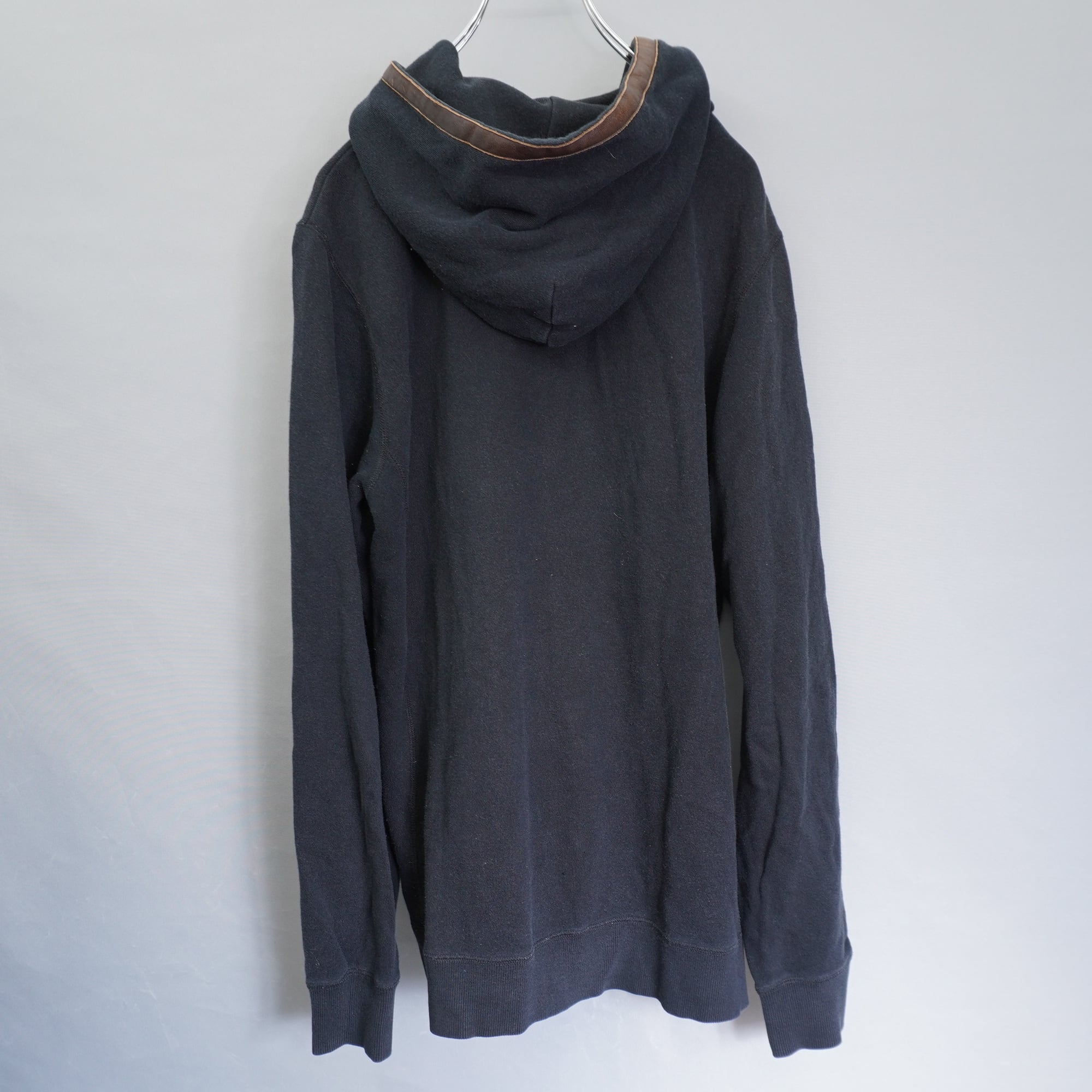 【R.NEWBOLD】レザーパイピングワンポイント刺繍フルジップパーカー