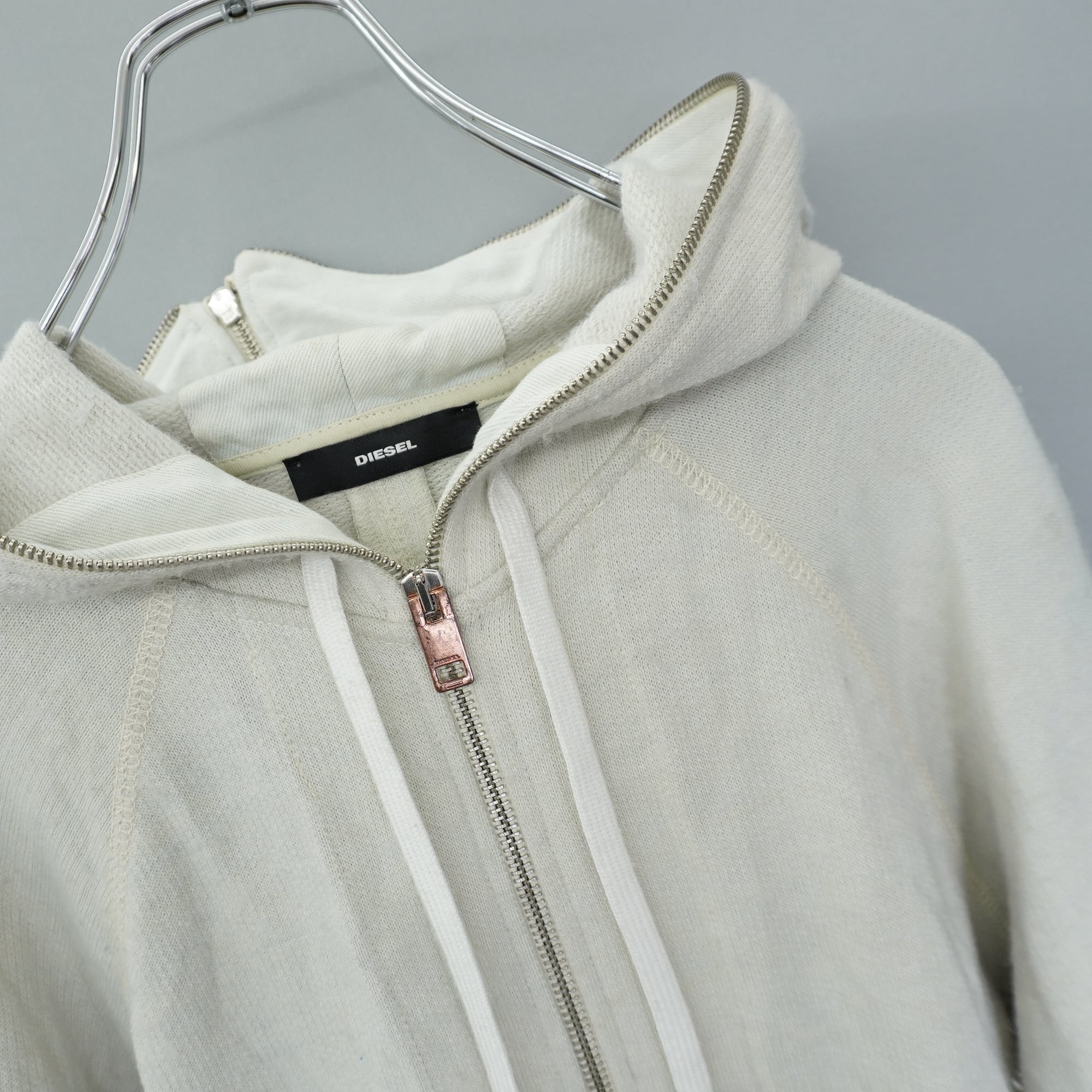 【DIESEL】ダメージ加工ウール混ジップアップニットパーカー