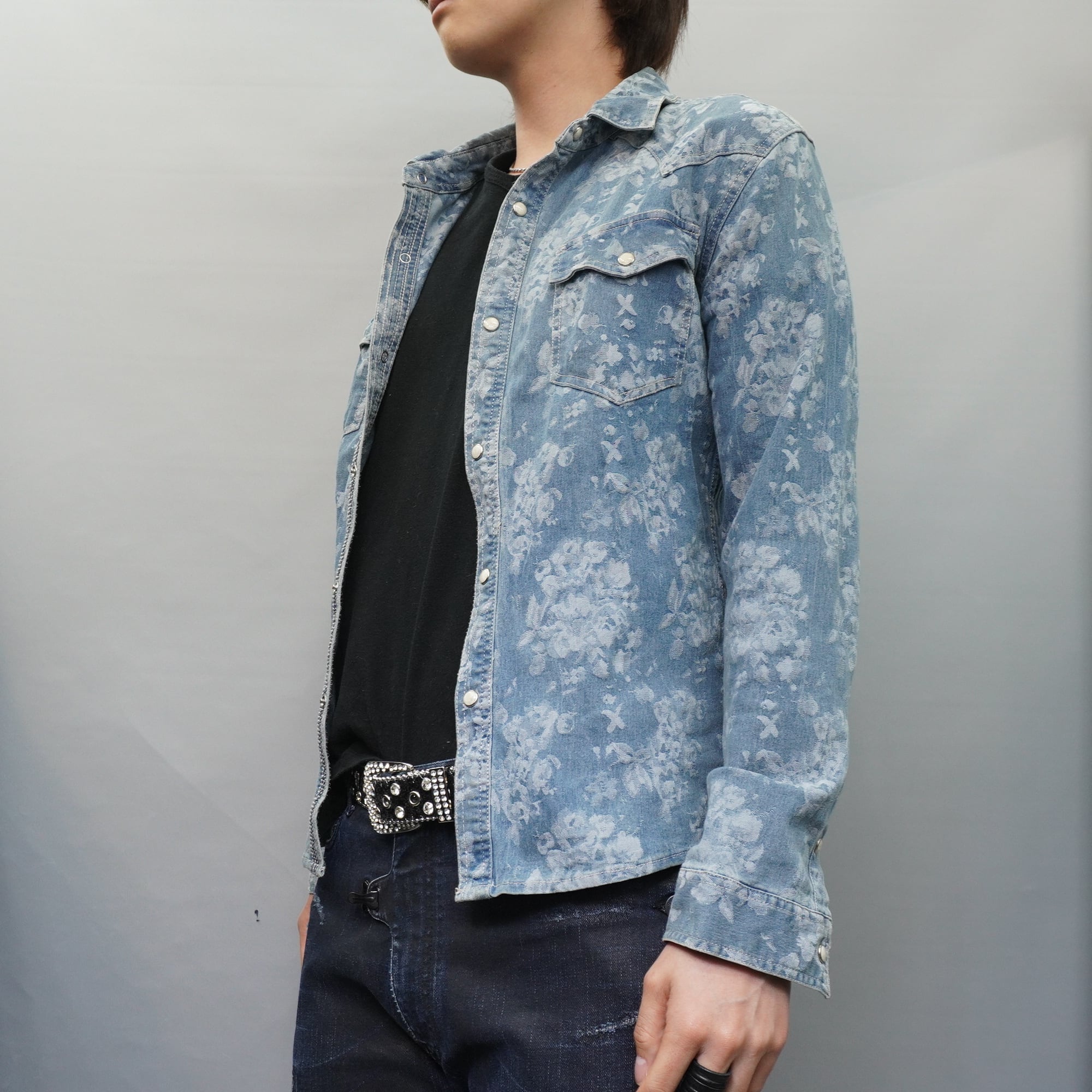 【in the attic】00's 花柄コットンデニムシャツ