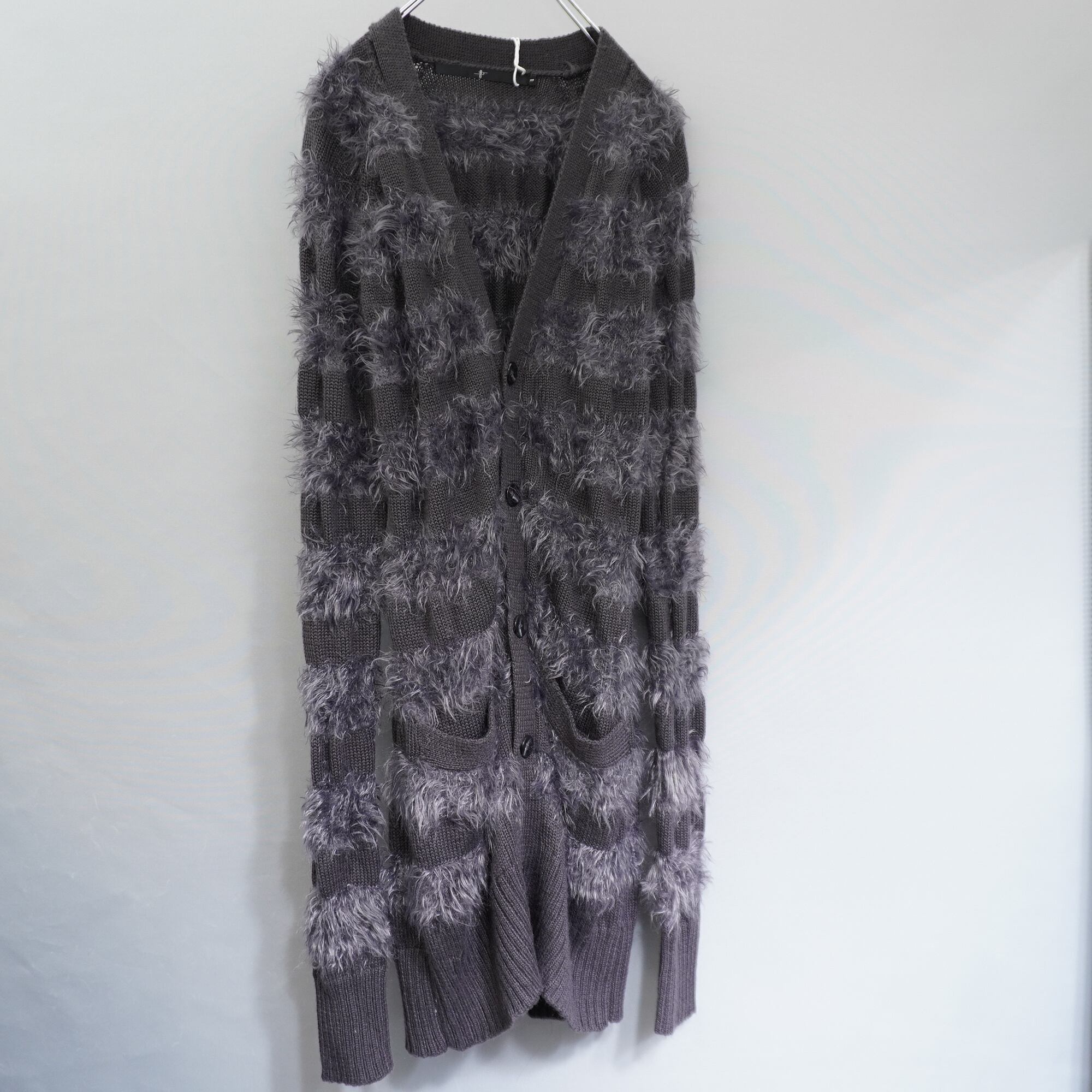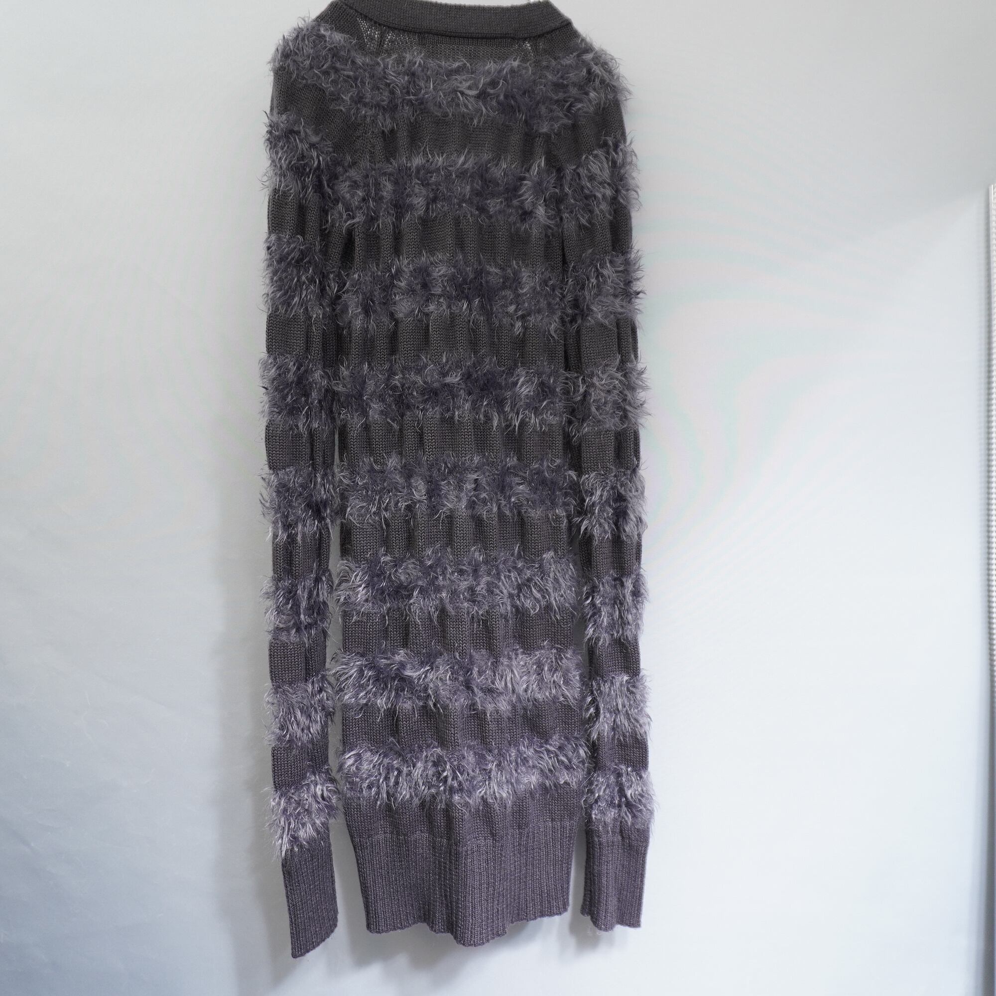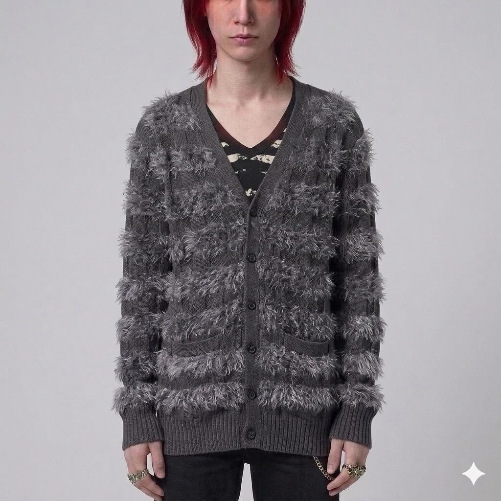 【NO ID.】Y2K シャギーボーダーニットグランジカーディガン