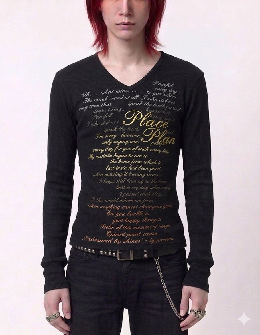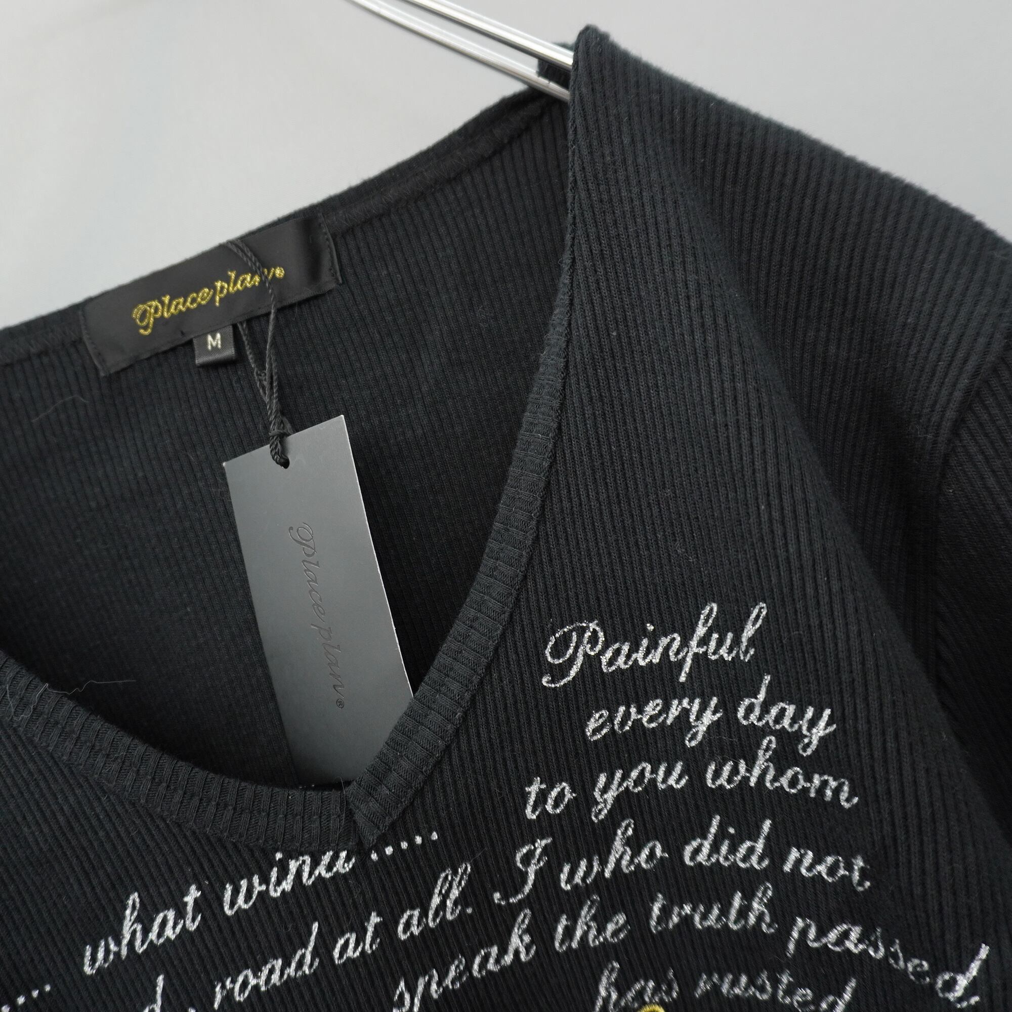 【Place plan】00's 英字刺繍VネックリブL/Sカットソー