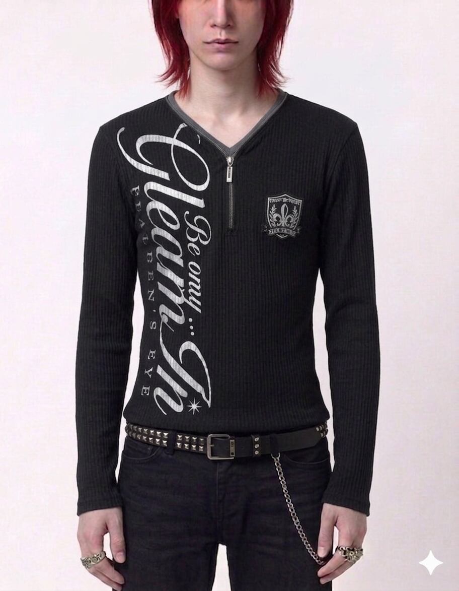 【USED】Y2K フェイクレイヤード 箔プリントLSカットソー